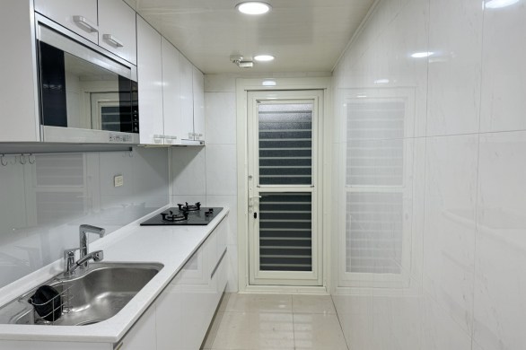 鋁門隔間,讓廚房油煙與熱氣不會影響客廳◎有影片