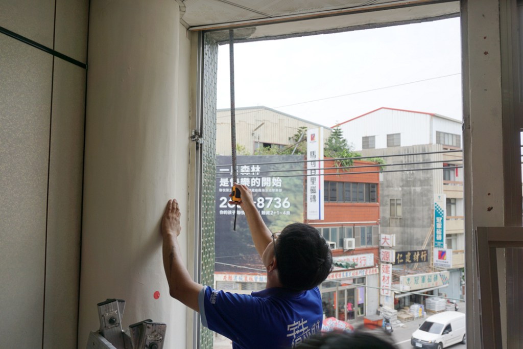 此次施工建築是位於台中大甲屋齡超過四十年獨棟圓弧型透天厝,一樓原為店面,二三樓為梁先生一家的起居室。目前一樓店面整修中,二三樓均為老舊木窗,原來木窗早已不堪使用,有漏水和噪音問題。