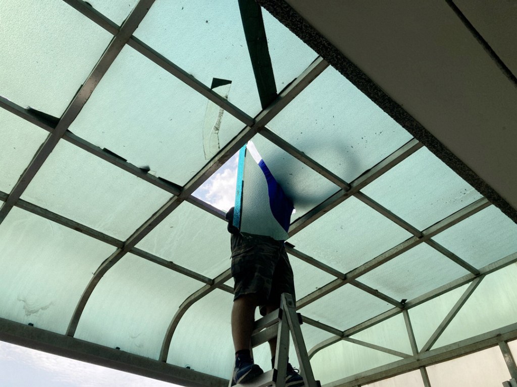 場堪後,採光罩的主結構和兩側PC板無破損可續用,建議只需更換頂蓋PC板即可。