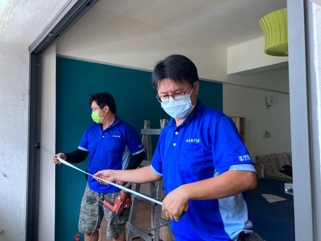業主家對外落地門老舊,樓下公車站吵雜深受困擾,要求拆除並裝設隔音好的氣密落地門,以隔絕噪音。原落地門型為四拉加固定開天,造成大門的高度較矮不便出入。