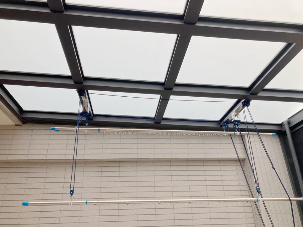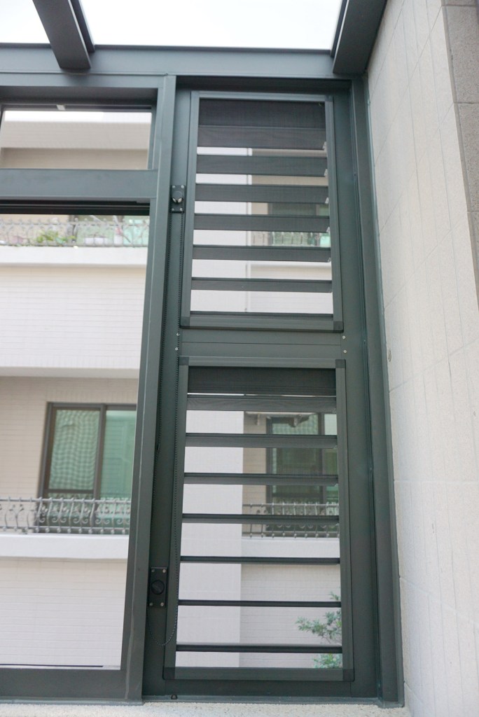 業主為獨棟住戶,二樓後留一大片陽台,希望打造兼具自然採光及通風的私人空間。經討論,業主決定裝設玻璃採光罩,讓空間更有質感。玻璃選擇霧面,避免夏季時陽光直射的炙熱感,對外窗採百葉窗加氣密窗型,天氣舒適時可開啟通風,亦可保留穩私,免除和後棟住戶對望的尷尬。