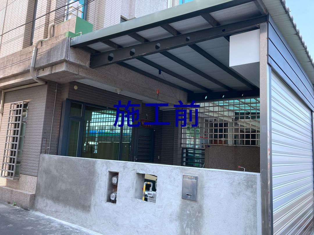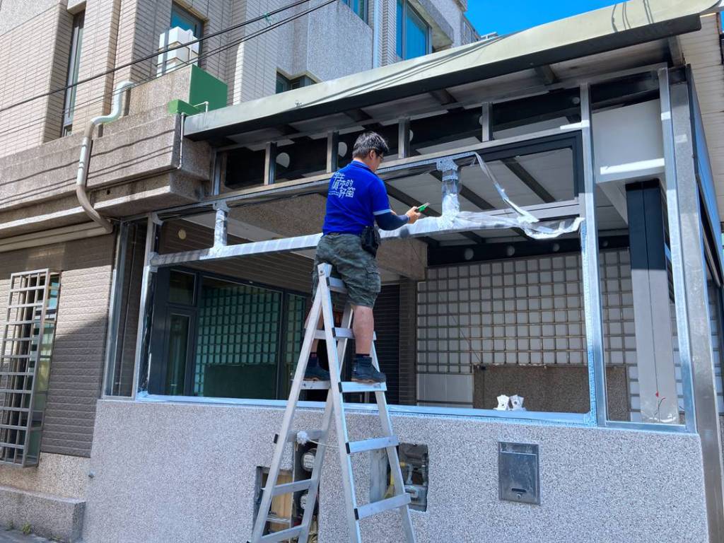 苗栗的王先生家中車庫大改造,側面裝設三拉窗,中間固定大片景觀玻璃窗。正門待鐵捲門裝設完成後,裝設四拉落地門,開天固定玻璃,門片裝飾大鋁格,鋁格可依需求調整格數。
