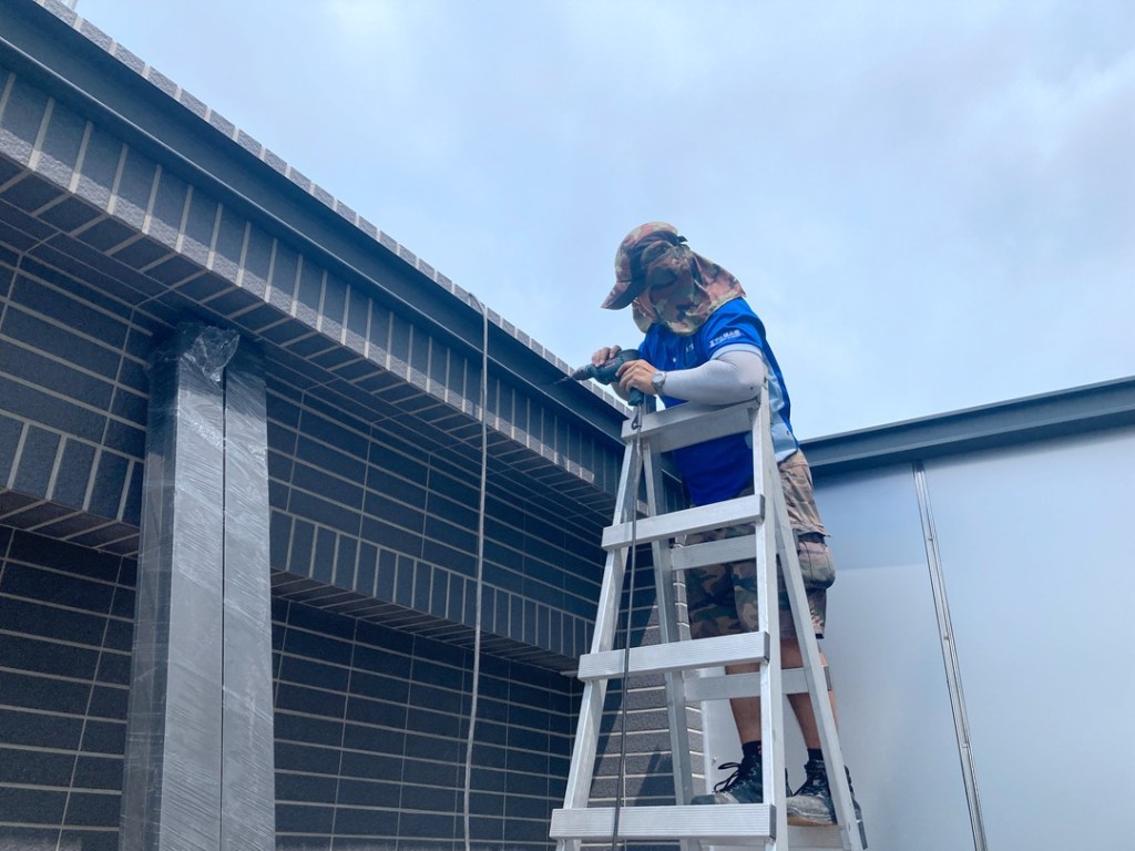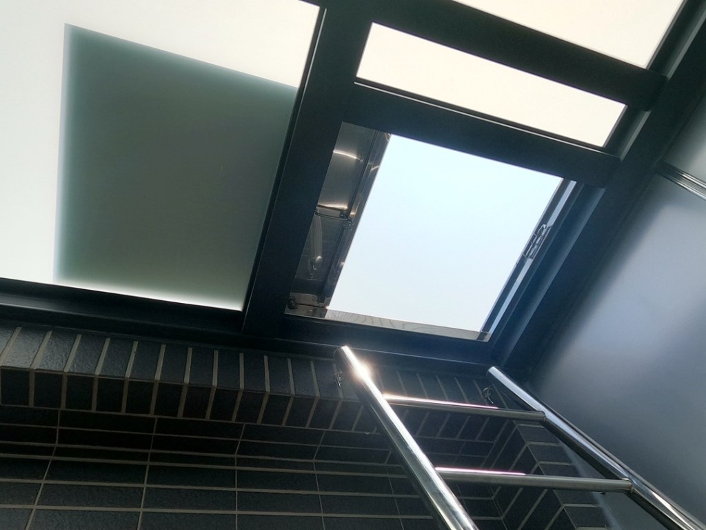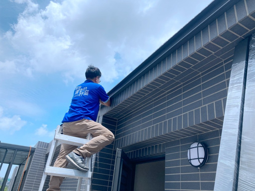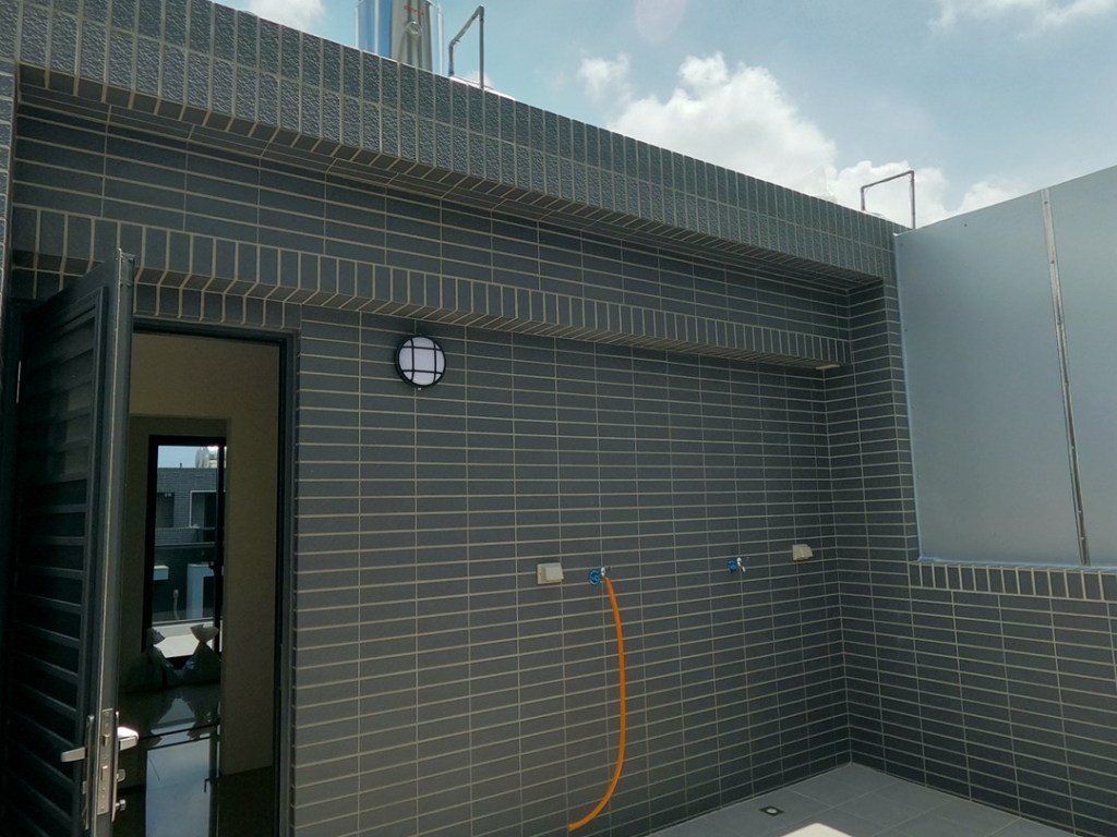 業主的新購入社區獨棟住宅,頂樓為半開放式天台,加蓋玻璃採光罩,方便晒衣,不擔心下雨收衣服來不及。