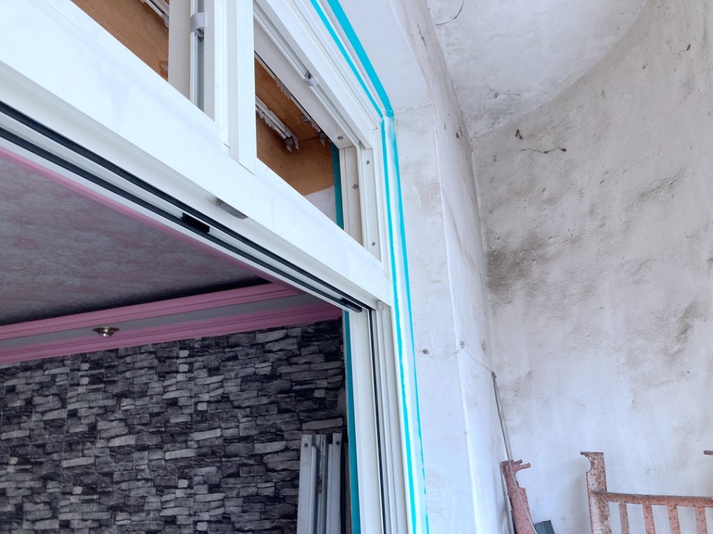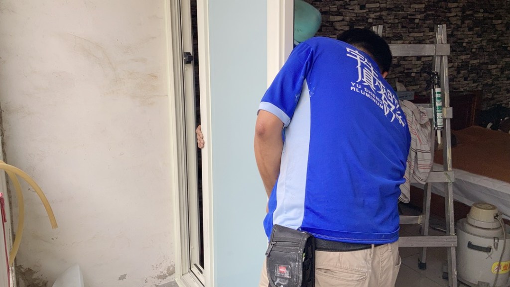 業主家二樓房間臨馬路車流不斷,長年飽受噪音所苦,要求更換氣密效果更好的落地門。這次選用全新宇生精品氣密窗系列四拉落地窗,鋁材選擇乳白色,搭配玻璃採用透明白膜膠合安全玻璃,引入自然光線又保有隱私,全程採乾式施工法一天即可完成。