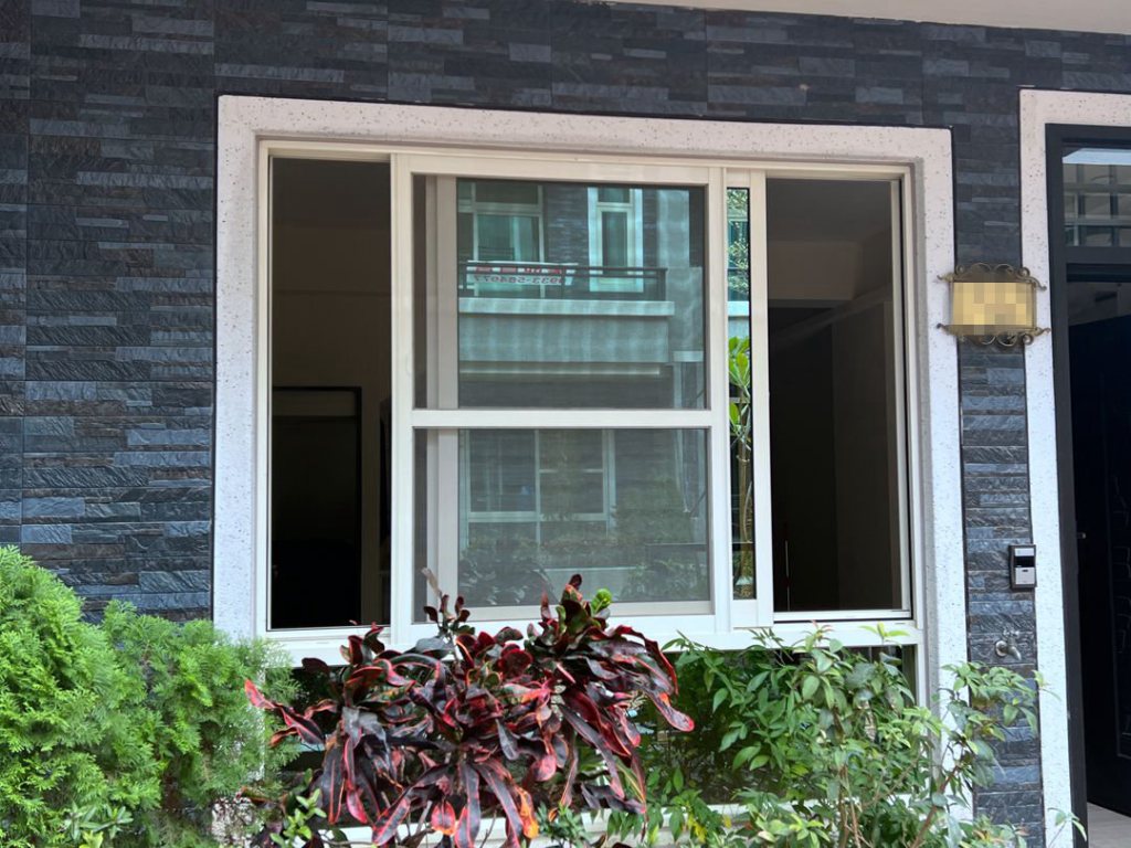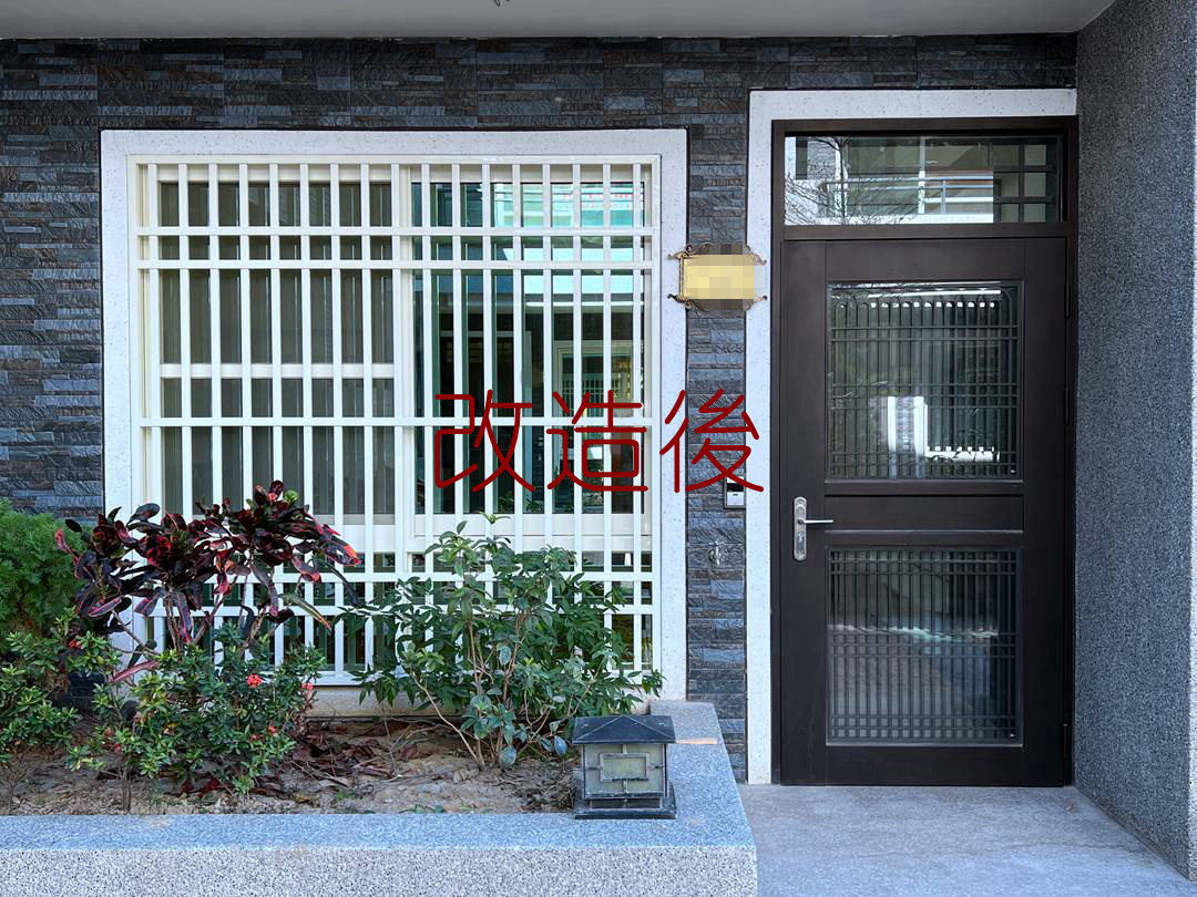 業主住宅一樓,前後窗戶各裝設鋁合金防盜窗,前庭採用固定式防盜窗,後院選擇活動式防盜窗,留有逃生口。