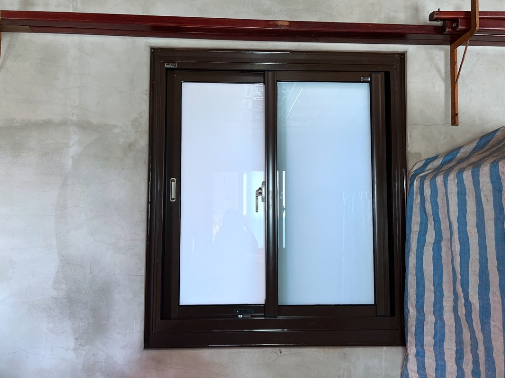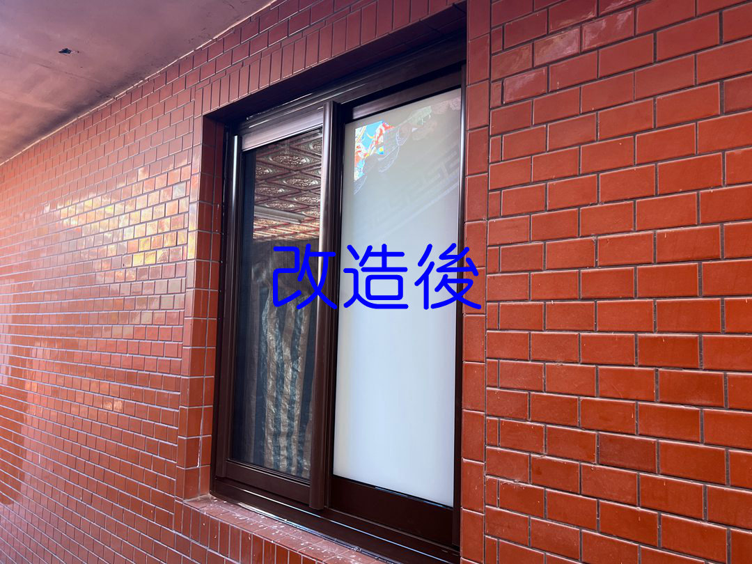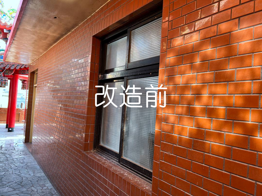 台中的鎮安宮位於海線大安區,海風侵蝕門窗損壞嚴重,而且東北季風強烈冬天很冷。寺廟二樓廂房,原作倉儲使用,考量安全及使用方便進行整修工程。原來分上下二段的舊型鋁窗改為二拉的氣密窗,使用上更方便少積灰塵。