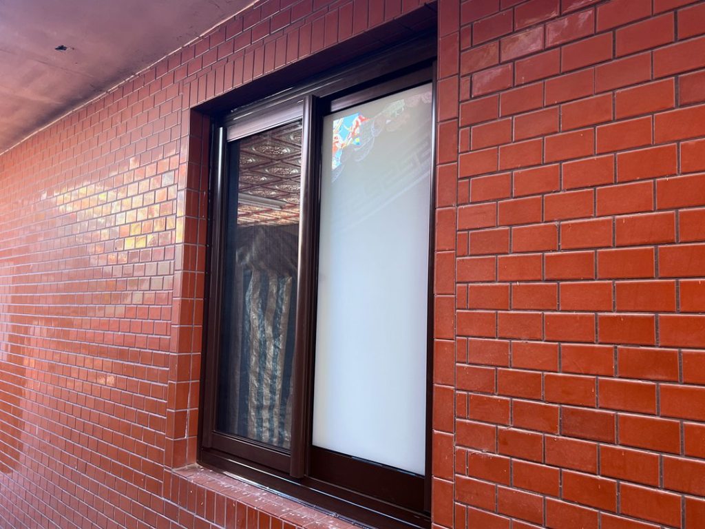 咖啡框體,搭配白膜玻璃,抗強風,耐髒耐用。
