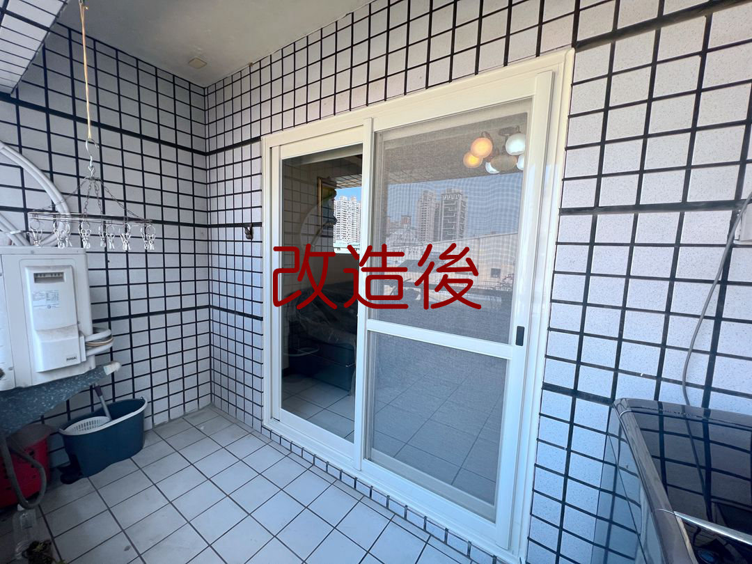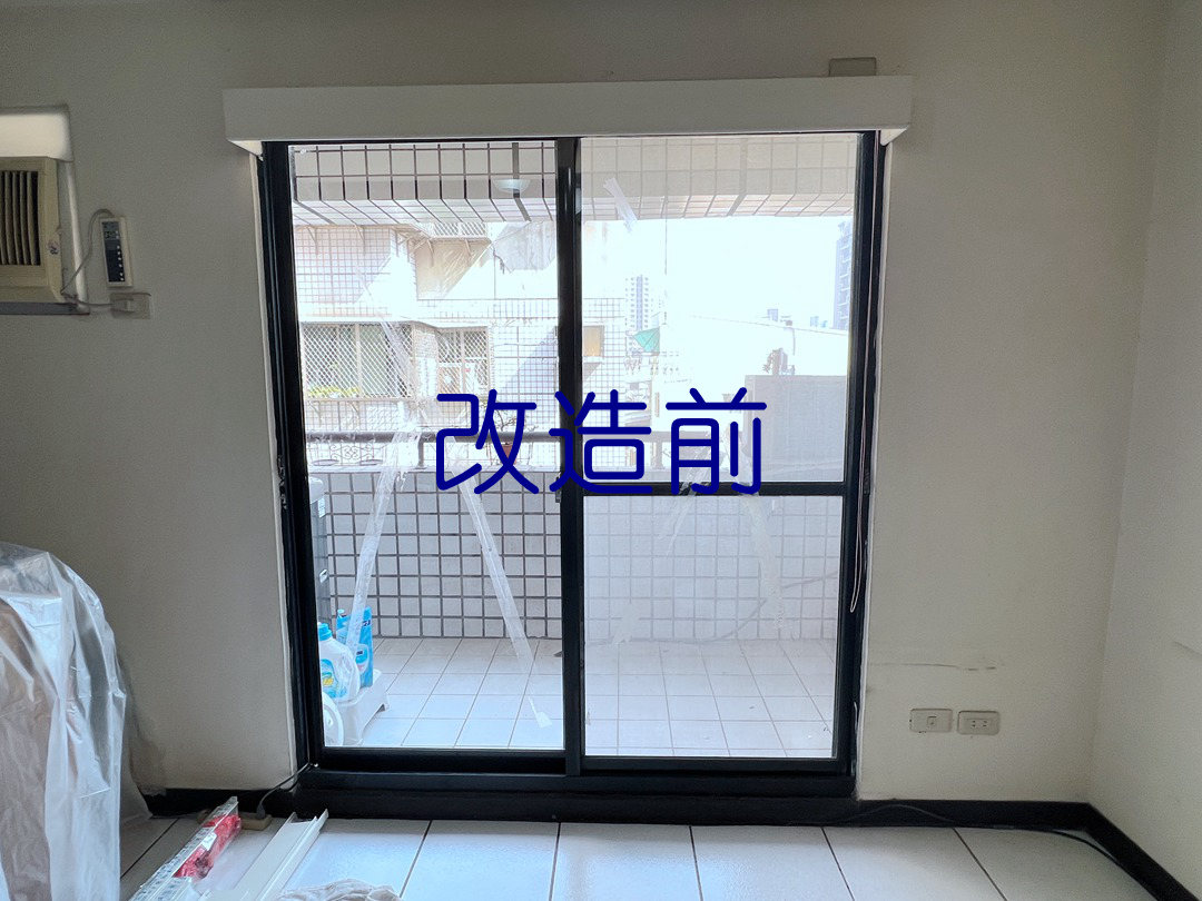 業主李小姐在多次討論後,決定先換掉客廳的二拉落地窗。原舊型落地窗為黑色,建議可選擇乳白色,讓室內空間更明亮。屋主原有使用窗簾的習慣,考慮以後要把陽台改造,希望往後坐在客廳就可以享受陽台美景,建議可以採用透明玻璃,空間感更開闊,而且日後可享受陽台美景,需隱私時只需拉上窗簾即可。