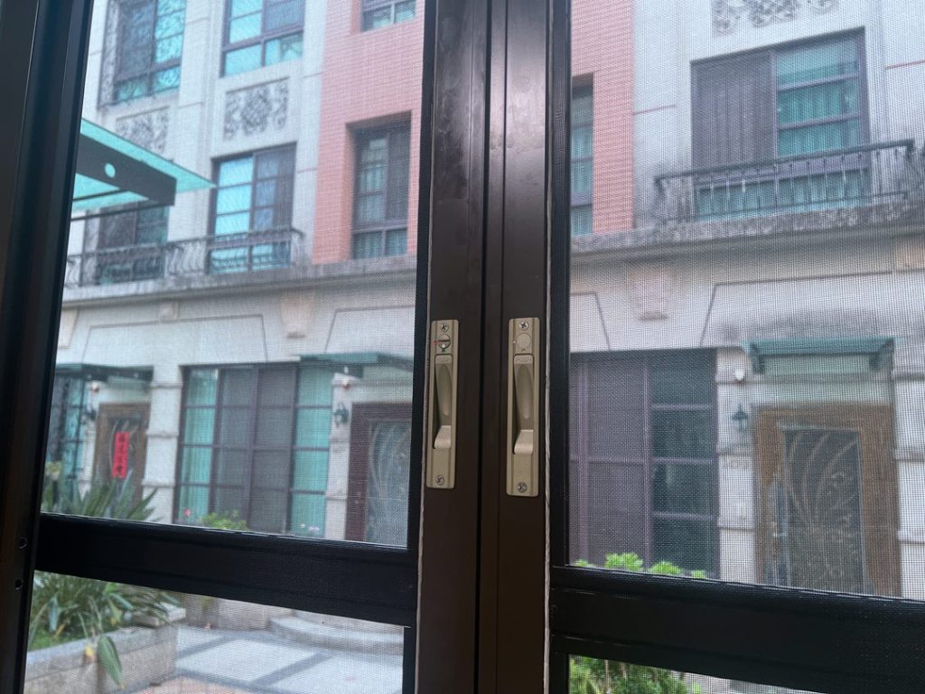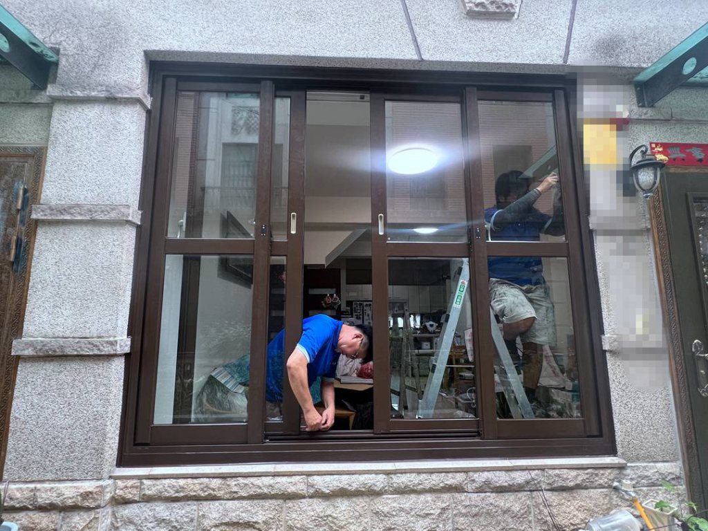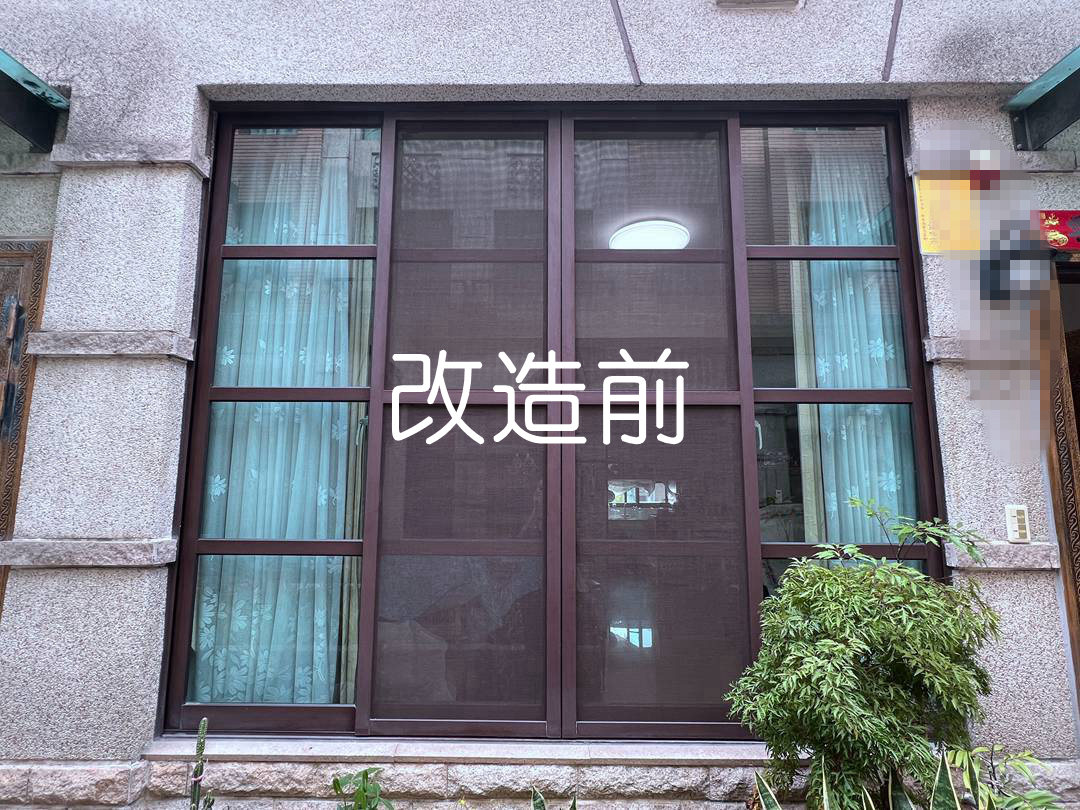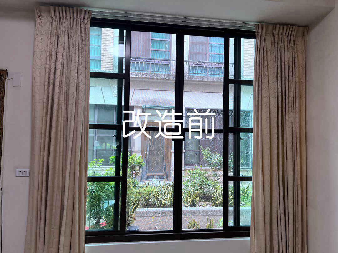 業主家客廳四拉型氣密窗,改裝新型氣密窗,咖啡色鋁合金框體,搭配透明玻璃,低調沈穩。