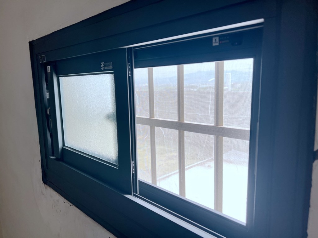 台中外埔的李先生家頂樓鋁窗,雖然不常開啟,但壞掉不好開也很困擾,想換新窗。不常開啟的氣密窗,建議作霧面玻璃氣密窗,玻璃採用5mm銀霞玻璃,防盜則延用原來的防盜窗。