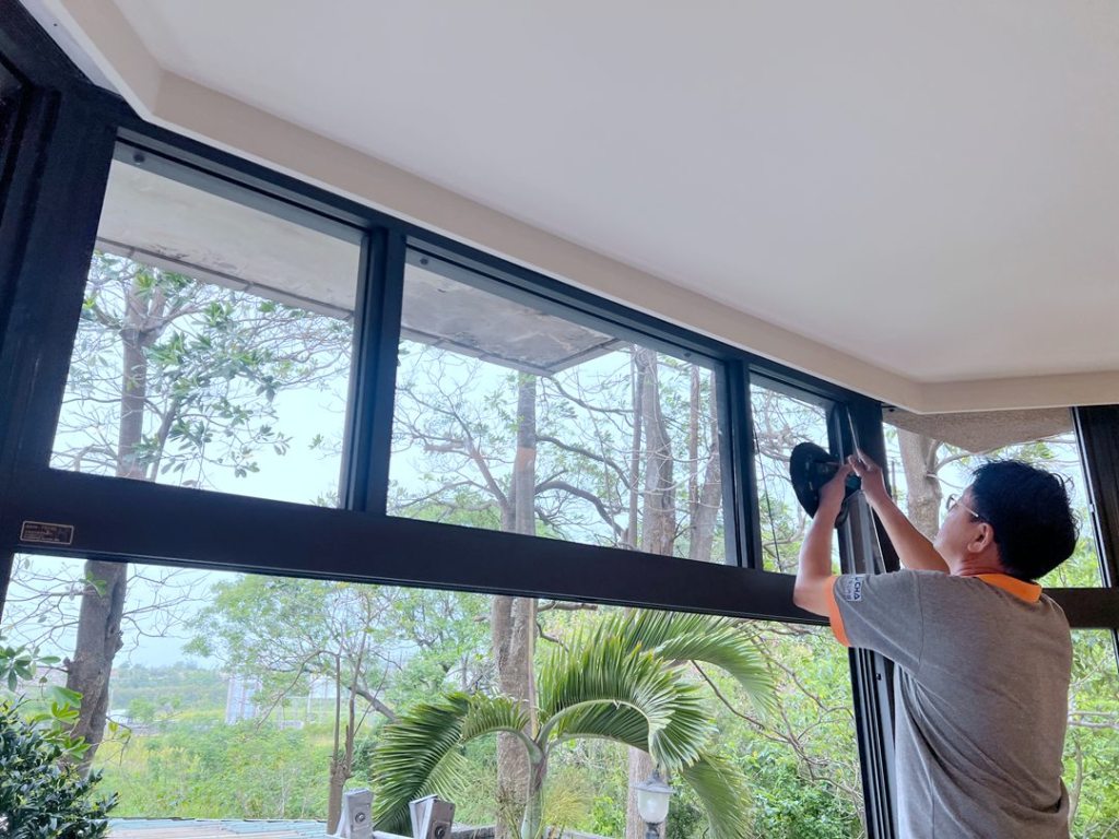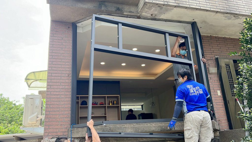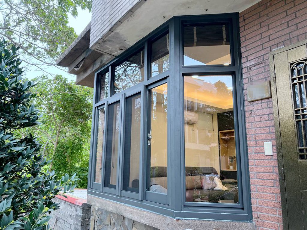 原建商設計為中間四拉窗,左右側窗為推射窗。因業主使用習慣不開啟側窗,建議作固定玻璃,減少落塵。正面則保留採用四拉窗型,因應四季變化,可開窗通風,或是關閉阻隔季風及噪音。上氣窗作固定玻璃,一般傳統固定窗只用矽利康填縫,宇生精品窗採用新式鋁押條加強防水設計,雙重防水且沒有膠條老化問題,美觀實用。