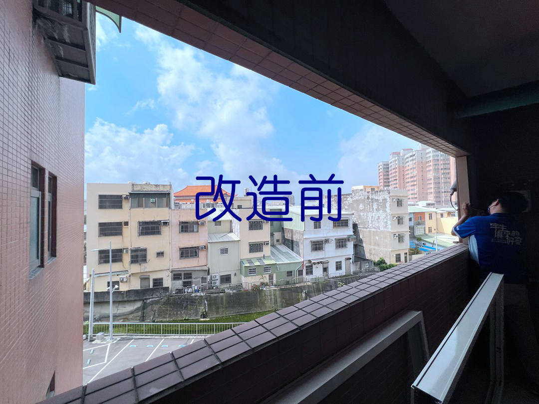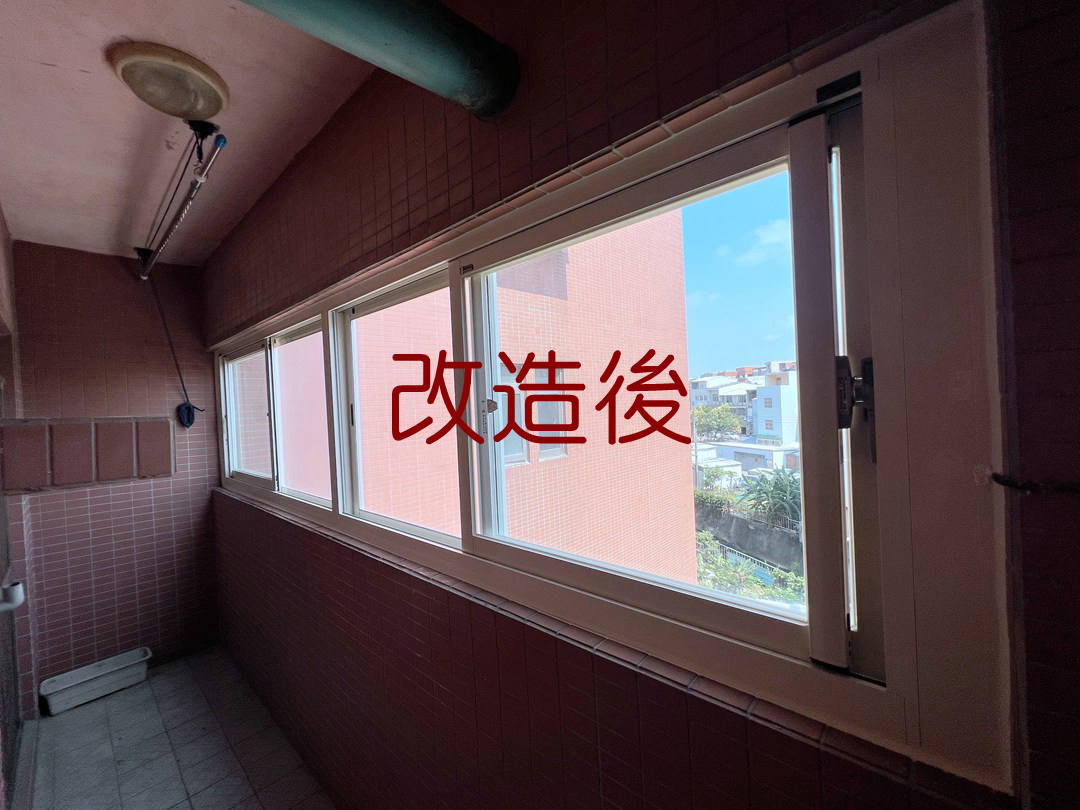 業主家中整修,後陽台規劃為晒衣空間,希望裝設氣密窗。此次設計以二座二拉氣密窗二併方式,側邊留鋁板讓管線通過,不影響窗戶使用。