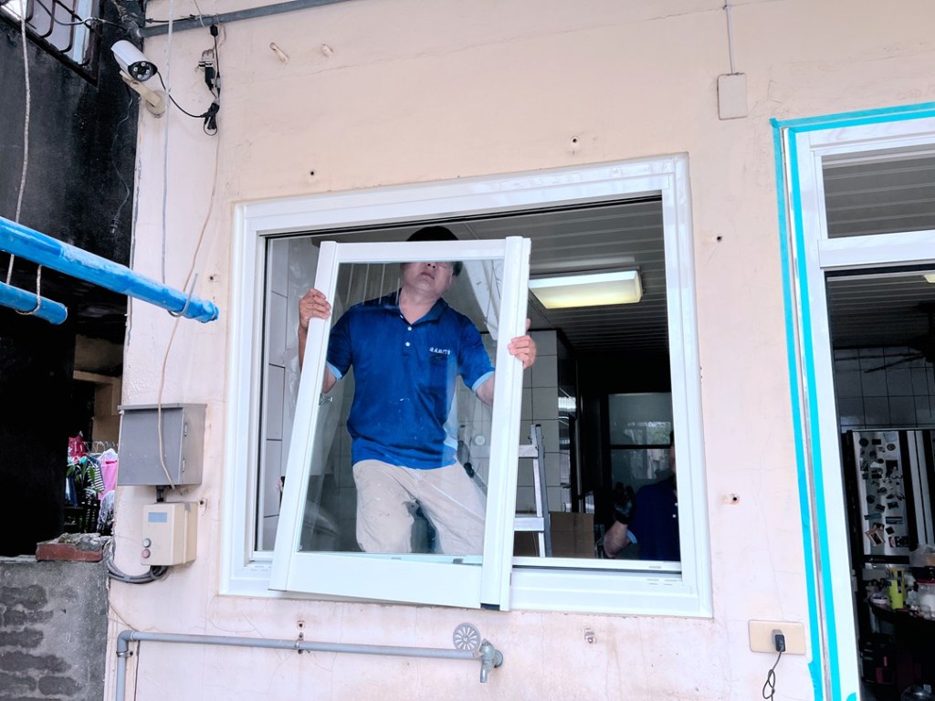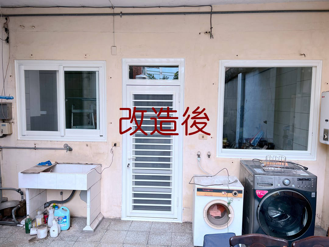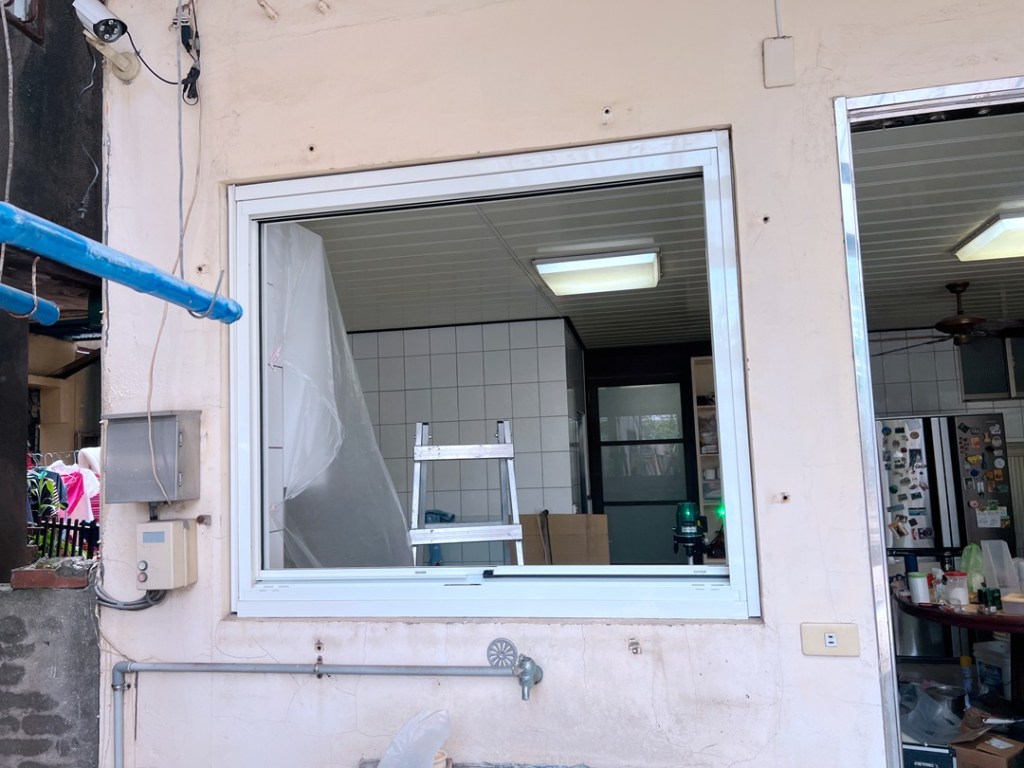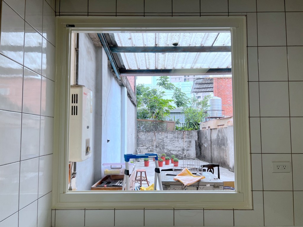 台中豐原的陳太太重新翻修廚房,廚房的門窗也要一併更換。原裝為舊型不銹鋼門和鋁窗,廚房連接私人後院。陳太太希望以後全家可在廚房一邊用餐一邊欣賞風景,也希望能保有自然風。