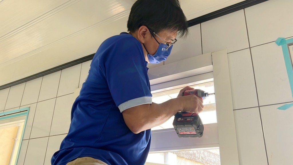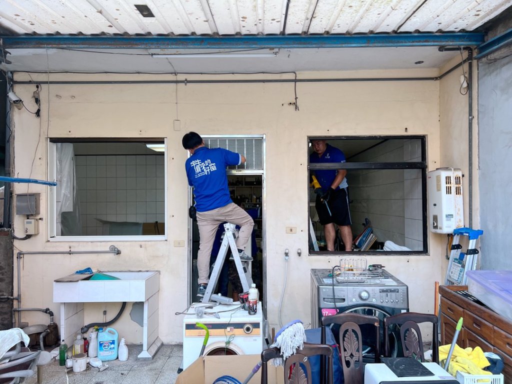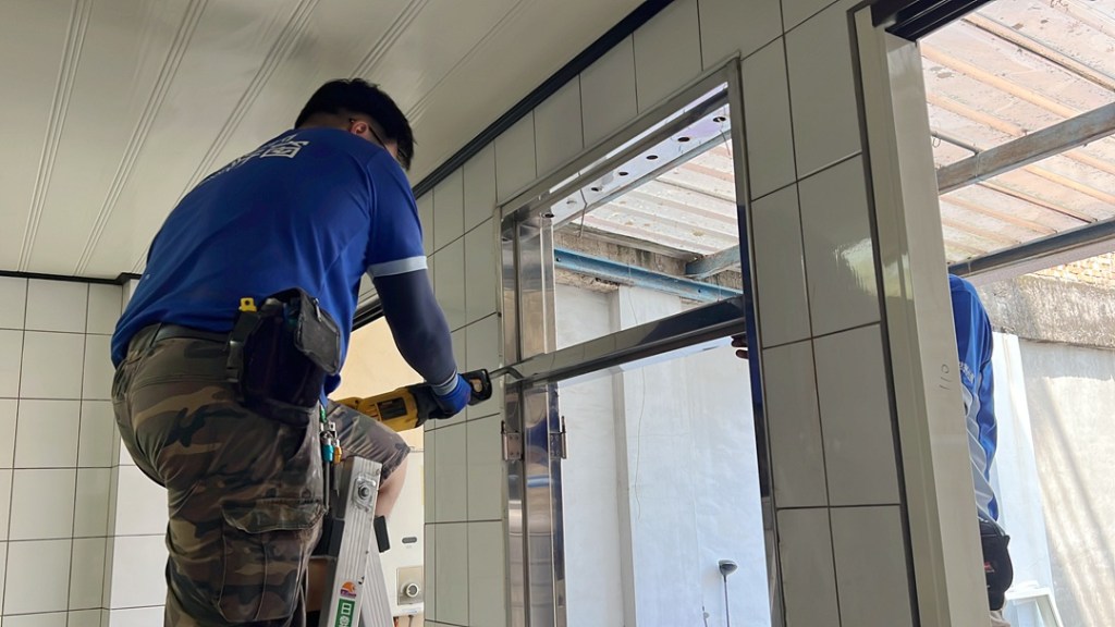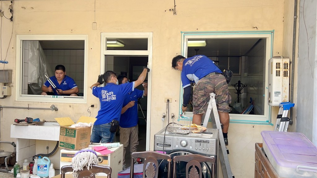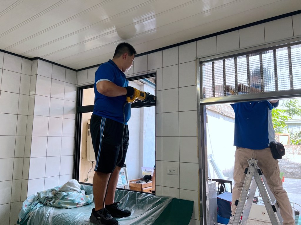 台中豐原的陳太太重新翻修廚房,廚房的門窗也要一併更換。原裝為舊型不銹鋼門和鋁窗,廚房連接私人後院。陳太太希望以後全家可在廚房一邊用餐一邊欣賞風景,也希望能保有自然風。