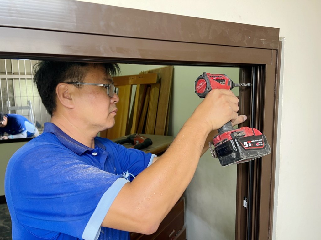 業主家鄰有嫰嬰的哭聲影響睡眠,希望更換氣密窗後,能加強隔音。此次共更換對外窗二座,對內窗二座,採用5mm+5mm白膜膠合安全玻璃搭配咖啡色鋁框體。每座窗戶配合紗窗防墜裝置及窗戶開口限制器,安全有保障。
