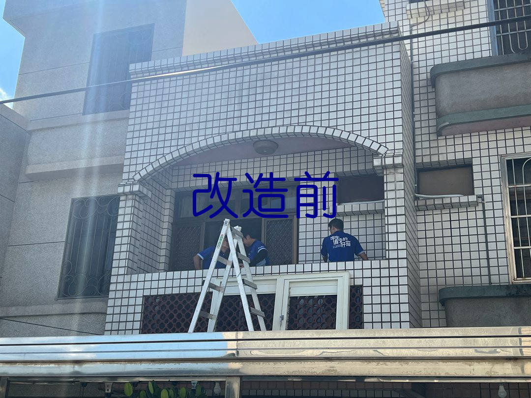 業主住宅二樓原為歐風造型露天陽台,因海線迎風面風勢強勁且西曬,業主希望作更堅固的鋁百葉窗,最終決定採用一座活動式鋁百葉窗搭配固定鋁百葉窗。