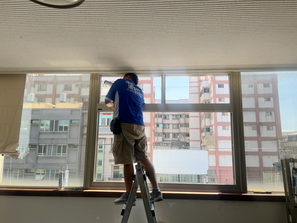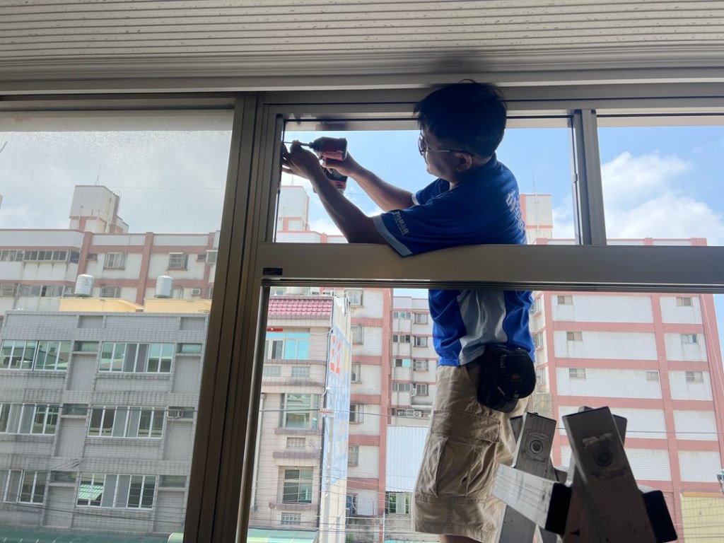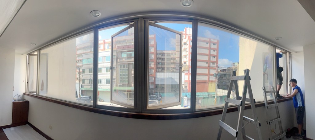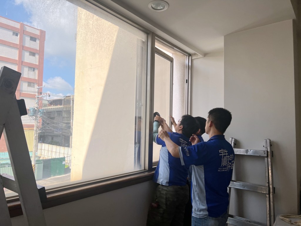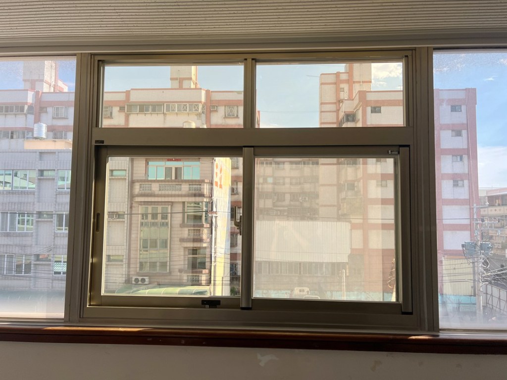 業主選擇和原來鋁窗同款香檳色系,搭配半反射玻璃,拆除推射窗後以包框方式安裝氣密窗,二天可完成。