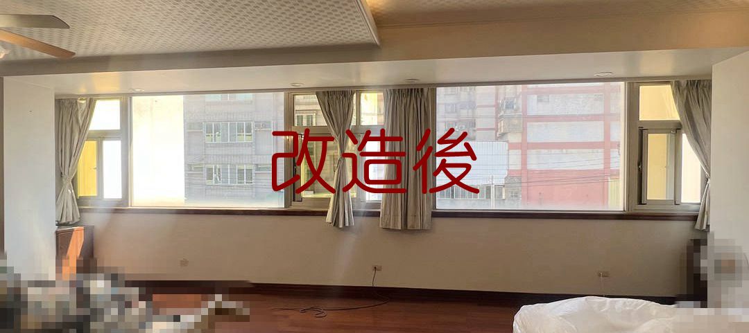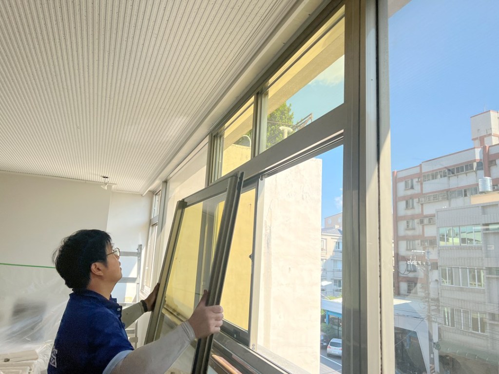 經評估建議左右二側的推窗,改為單座二拉氣密窗,中間二座推射窗則合併,改為一座二拉氣密窗。