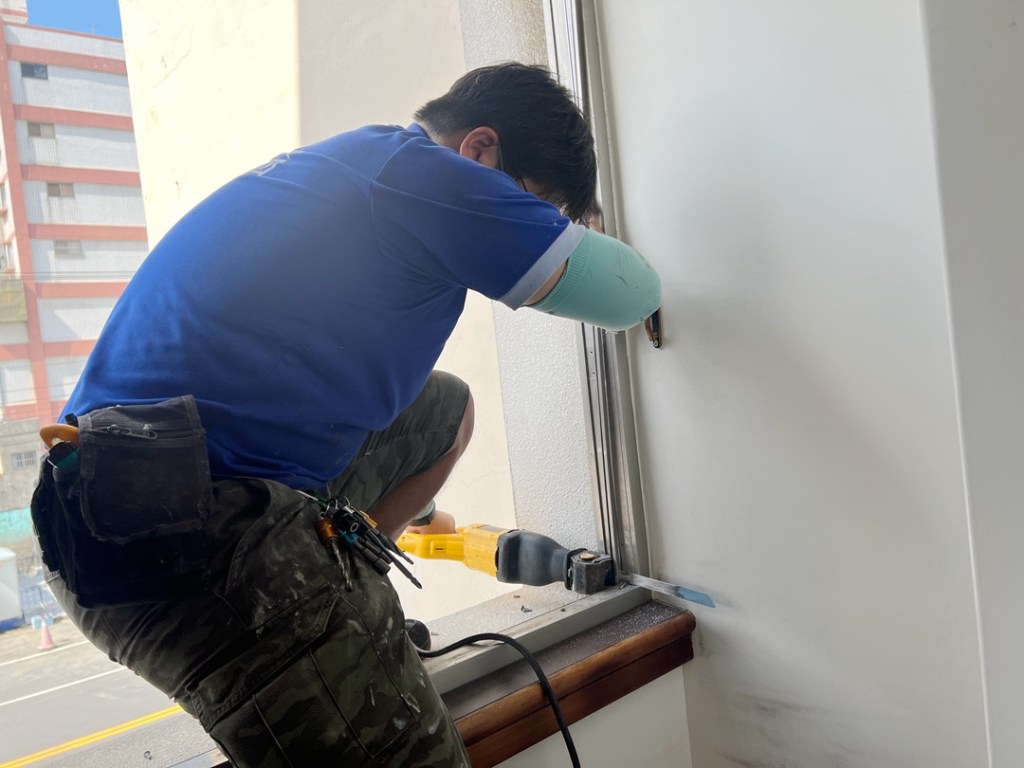 舊窗扇拆除後,確認包框新窗符合尺寸