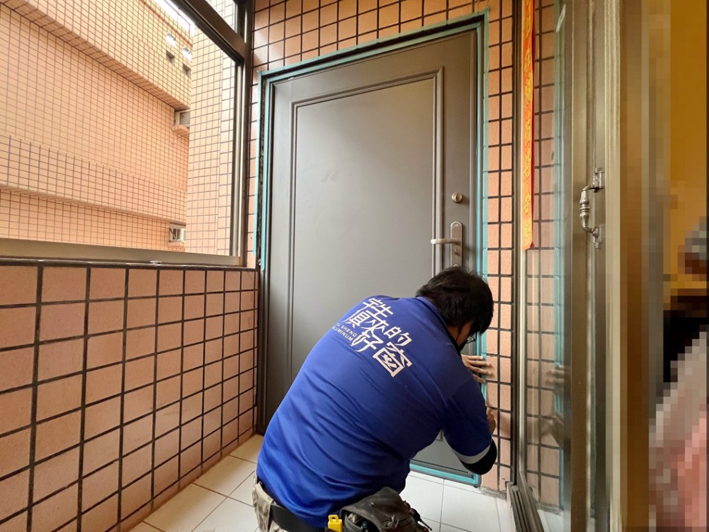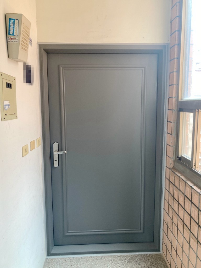 業主家原為舊式內外玄關門,因舊門偏差嚴重不易開關,而且雙玄關門不符合業主目前生活習慣,決定更換為一道玄關門。經討論主希望能和一般公寓大門不同,門片要有質感,推薦丹頂鶴玄關門,選擇銀灰色的丹頂鶴玄關門,單門款式,舊門框拆除,打造全新設計的門面,施工只需半日。高強度結構鉸鏈,搭配金冠鈦金暗閂鎖,防盜升級安全有保障。