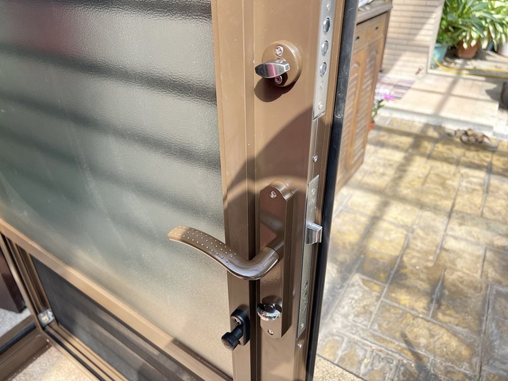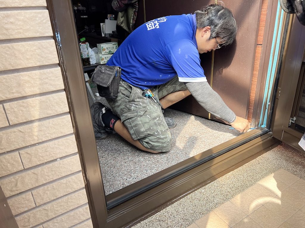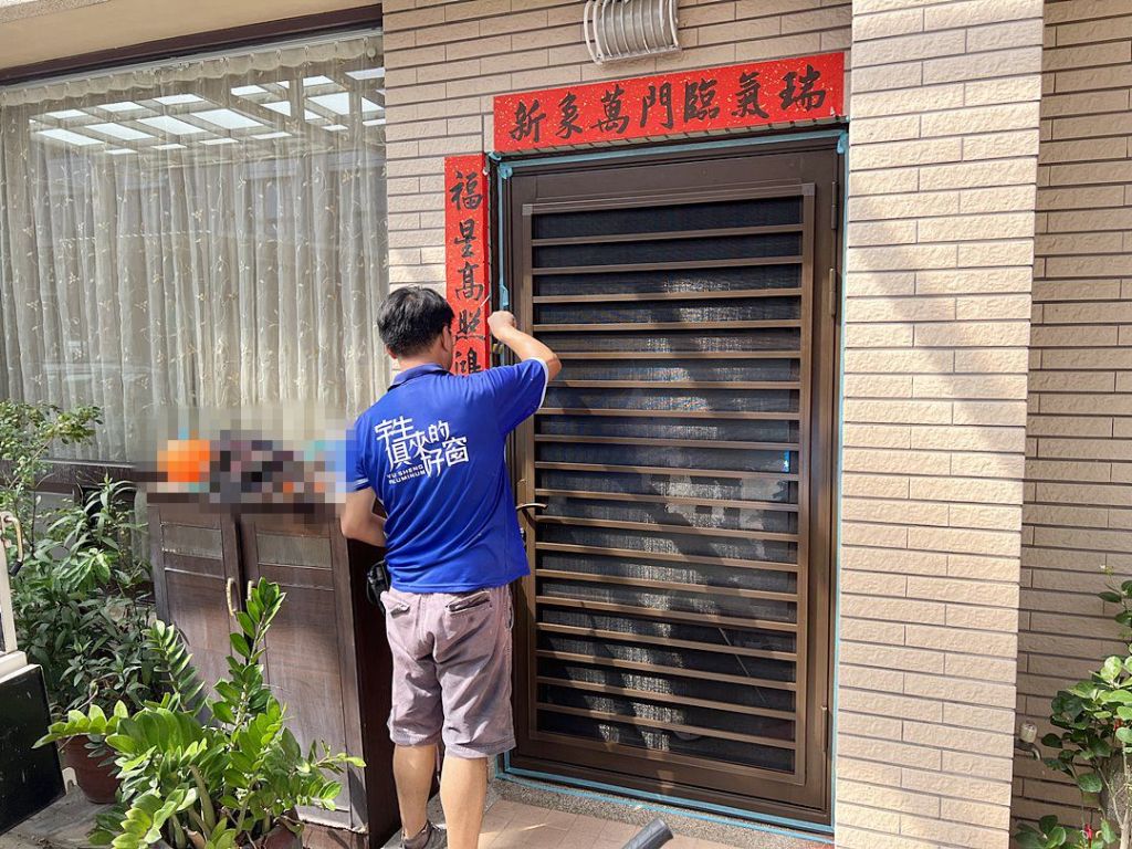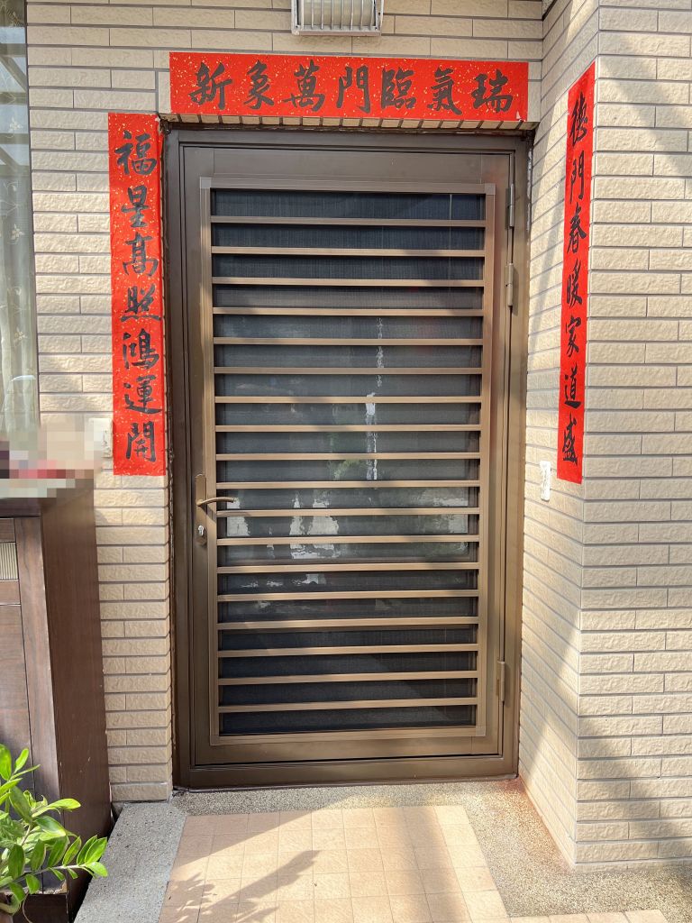 業主原有內外玄關門,因為外玄關門為玻璃門無法通風,希望裝一道門兼有防盜通風的效果。拆除外玄關門後,改裝設多段式微調三合一通風門,一扇通風門就兼具紗門、玻璃門及防盜門的功能,配合原內玄關門新門為外開形式,施工僅需半日。