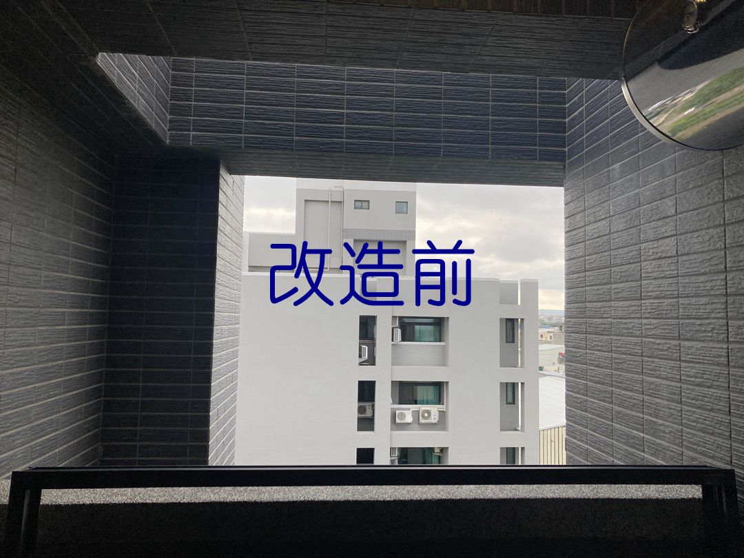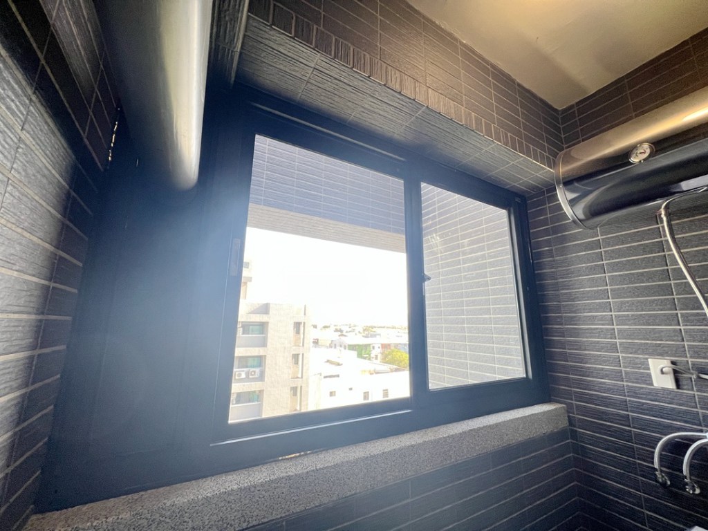 業主的陽台有洗衣機和抽油煙機管線,希望裝設氣密窗。建議先預備全新抽油煙機管,施工將以鋁板挖孔洞,將抽油煙機管線固定在鋁板,再以矽利康填補週圍縫隙防水。管線安置不影響氣密窗使用。