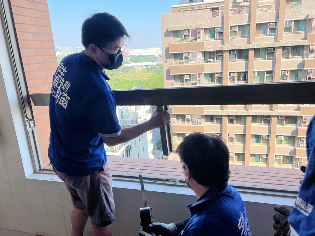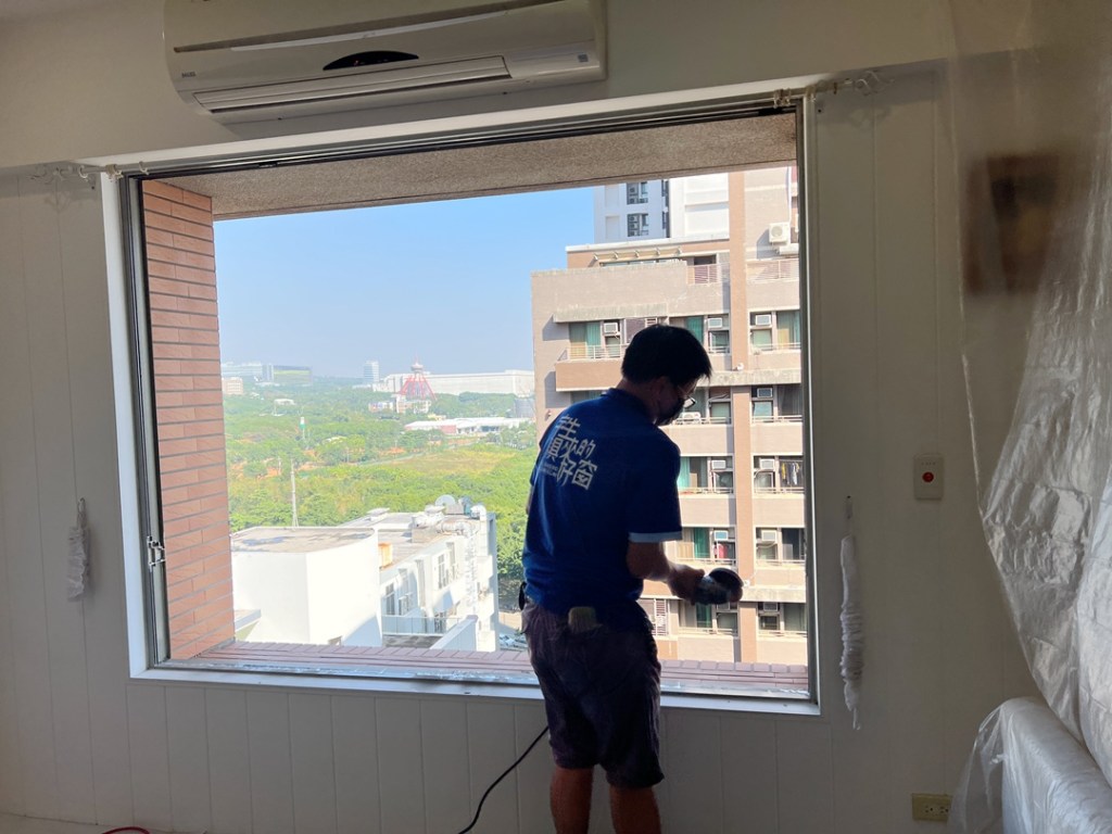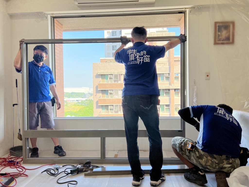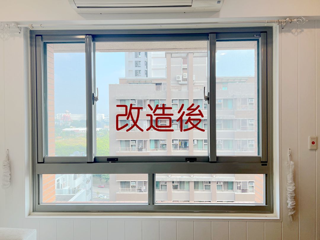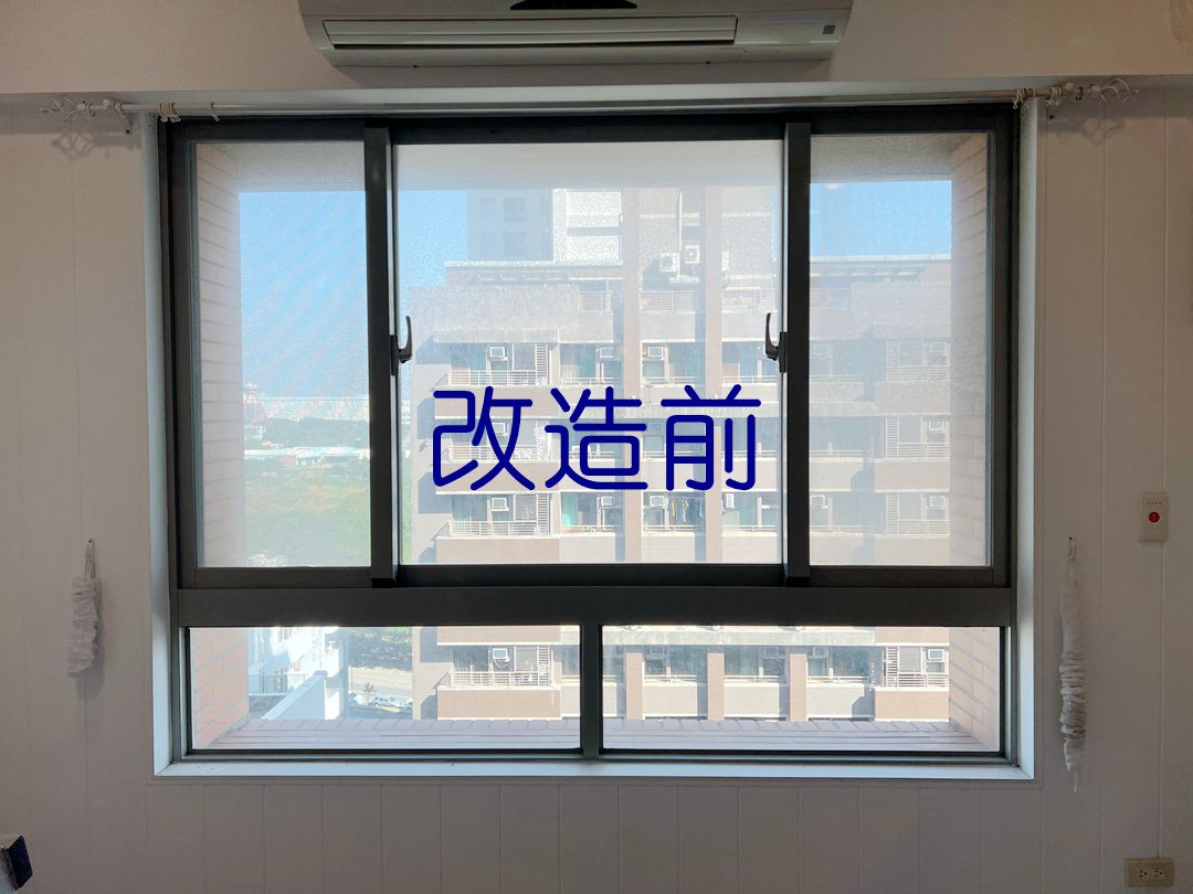 業主三拉景觀氣密窗已老舊,氣密效果不好,希望更換新窗。應管委會規定,新窗仍延續原窗型配制-三拉氣密窗搭配下固定玻璃。氣密窗的玻璃採用5mm+5mm膠合安全玻璃,新的三氣氣密窗的隔音及氣密效果更好,施工僅需半日可完成。