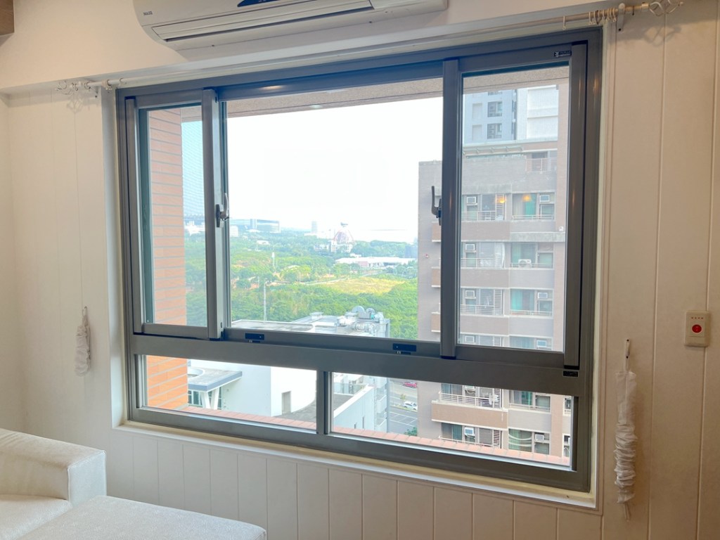 三拉氣密窗中間大片玻璃保有好景觀,如有大型物品從窗戶吊掛進出需求,亦可將中間大片玻璃窗片推到單邊或拆下。