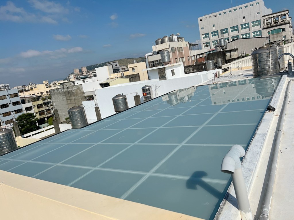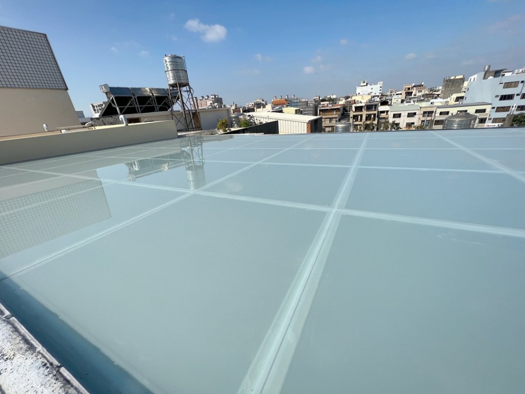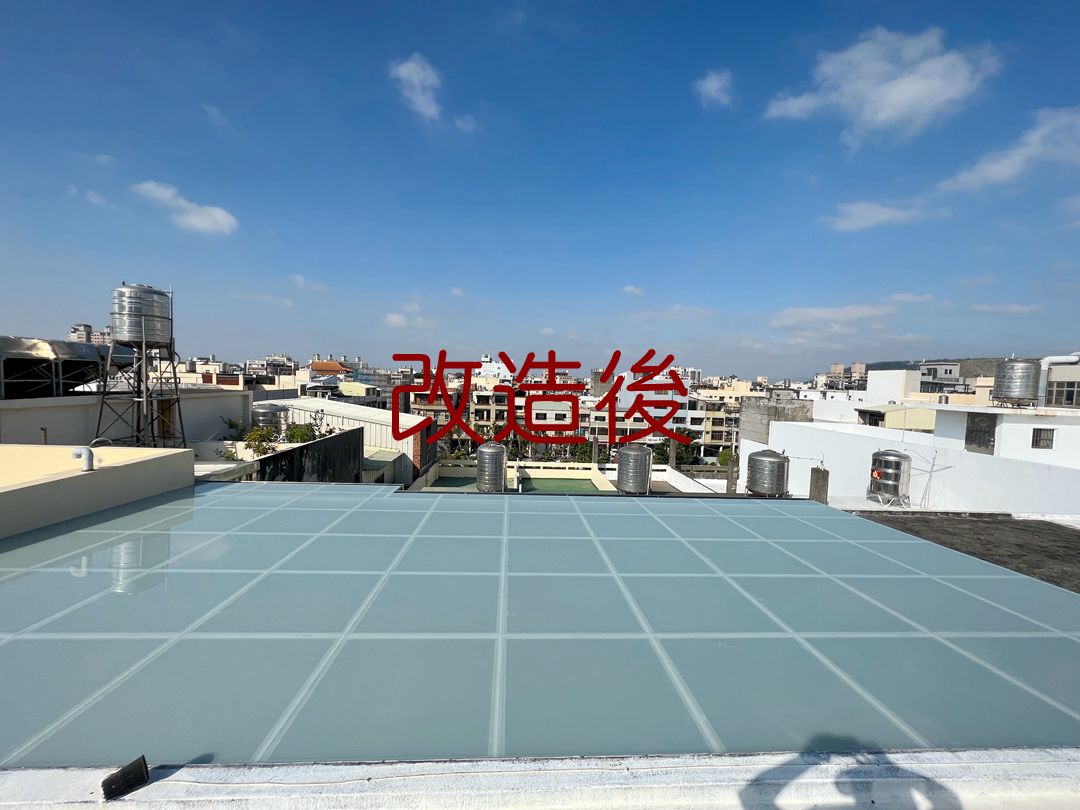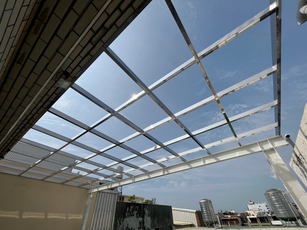 業主頂樓前後大陽台,希望作採光罩。因面積較大業主決定採用不銹鋼支架,並搭配5mm+5mm膠合安全玻璃。