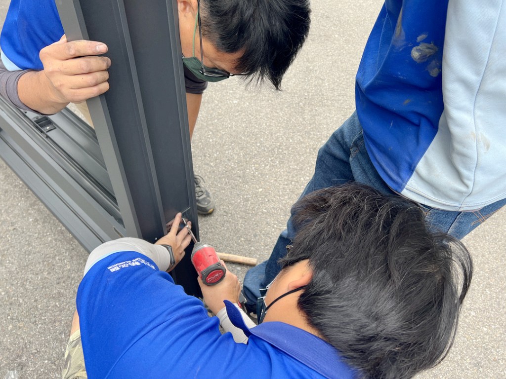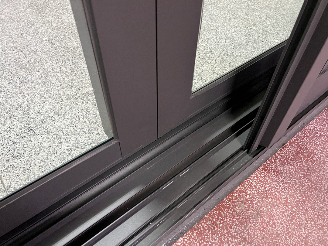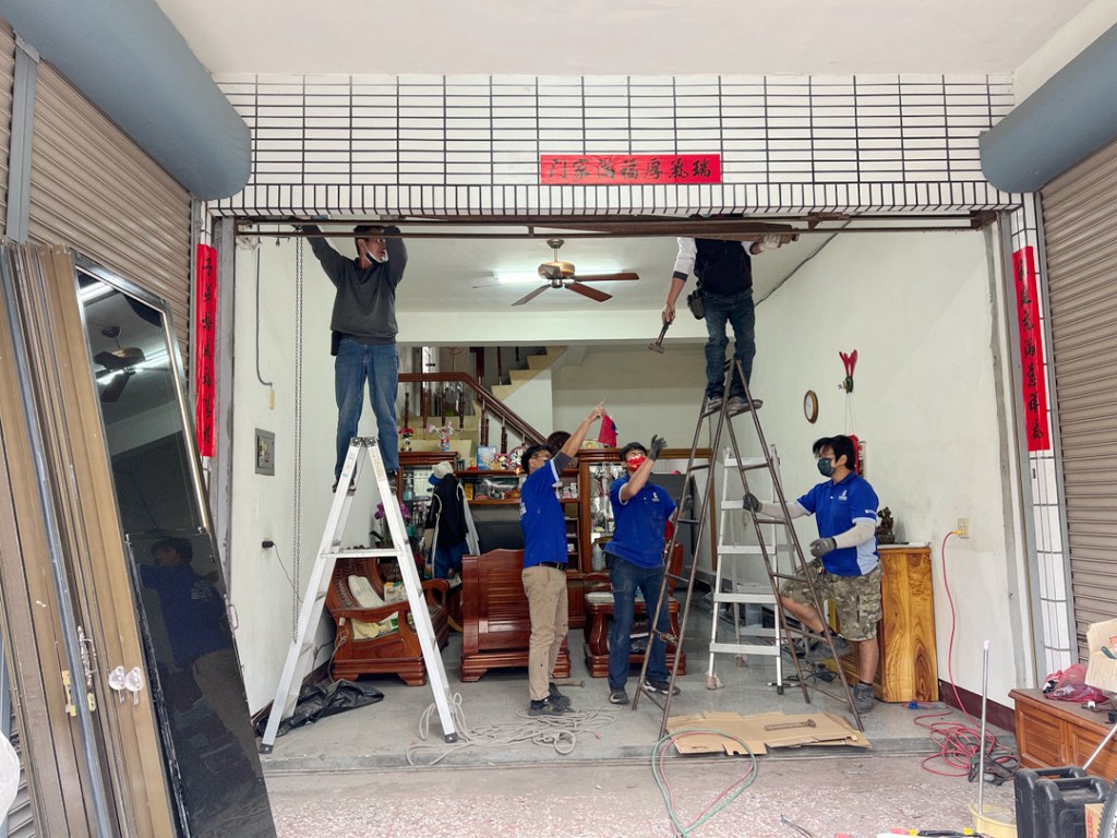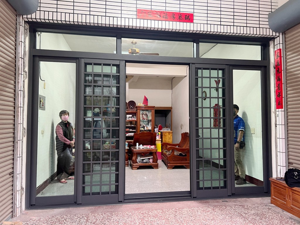 業主家一樓原為傳統式六拉落地門,冬天會灌幾進室內,決定改裝氣密落地門。原來落地門位置上部為舊鐵捲門,建議全拆除再裝氣密門窗。因業主家中地板較室外高,建議選擇有門檻型的氣密落地窗,讓氣密效果更好,也更美觀。