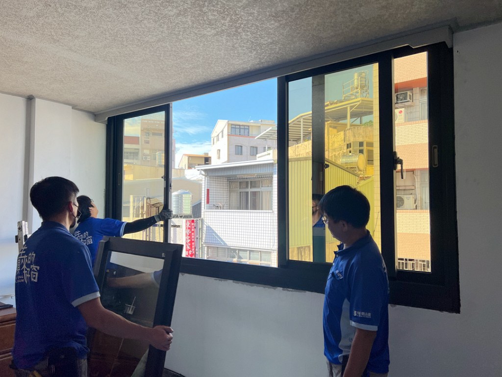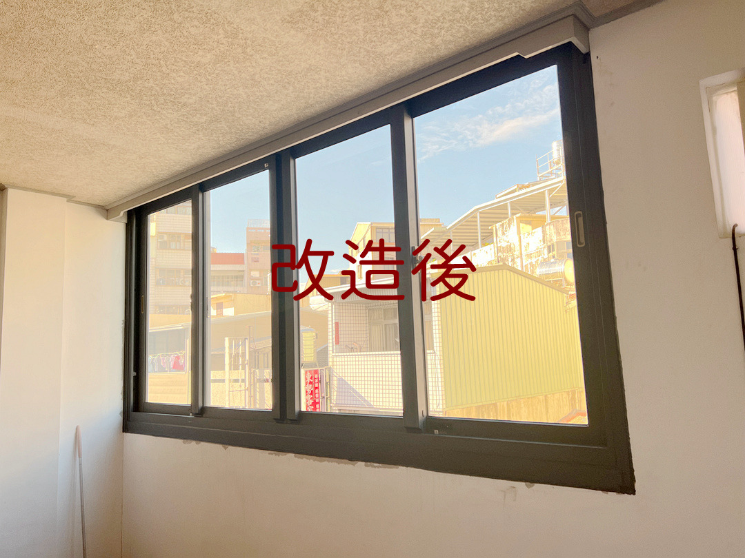 張先生老家位於台中豐原的鬧區,透天厝臨路很吵,門窗隔音效果不好。建議將舊型氣密窗改裝四拉氣密窗,以乾式施工方式包框施工。業主選擇鐵灰砂色搭配反射玻璃。氣密窗品牌為宇生精品門窗,該廠牌氣密窗於2020-2022年連續三年獲得經濟部設立的台灣精品獎(Taiwan Excellence Award),品質備受肯定。