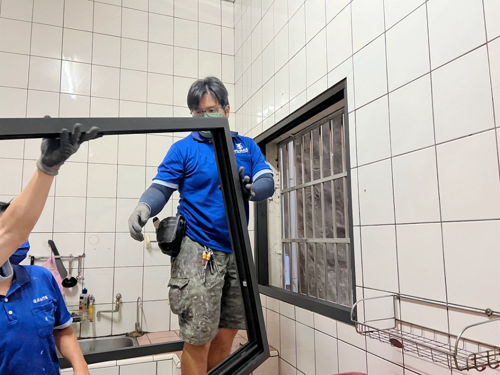 葉先生委託整修台中大甲的老家門窗,廚房大整修並更換氣密窗,氣密窗採乾式施工以新框包舊框方式安裝,舊框不露痕跡。