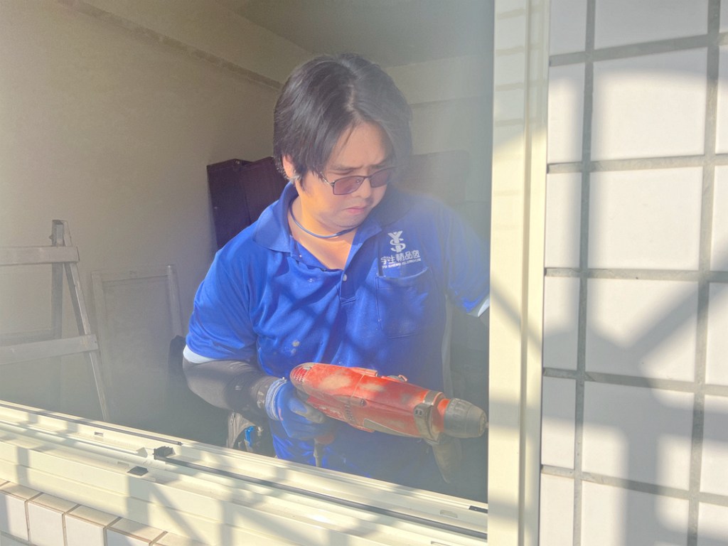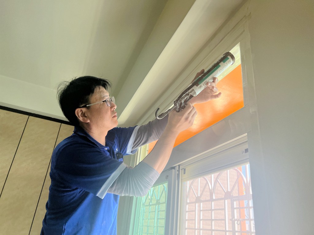 台中西屯的林先生因住家附近車流量日益增大,車聲24小時不絕於耳,希望安裝隔音效果好的氣密窗。業主最後選擇隔音氣密窗搭配5mm+8mm膠合安全玻璃。膠合玻璃係利用高溫高壓,在兩片玻璃間夾入強韌而富熱可塑性的樹脂中間膜(PVB)而製成,中間膜讓隔音效果更佳。