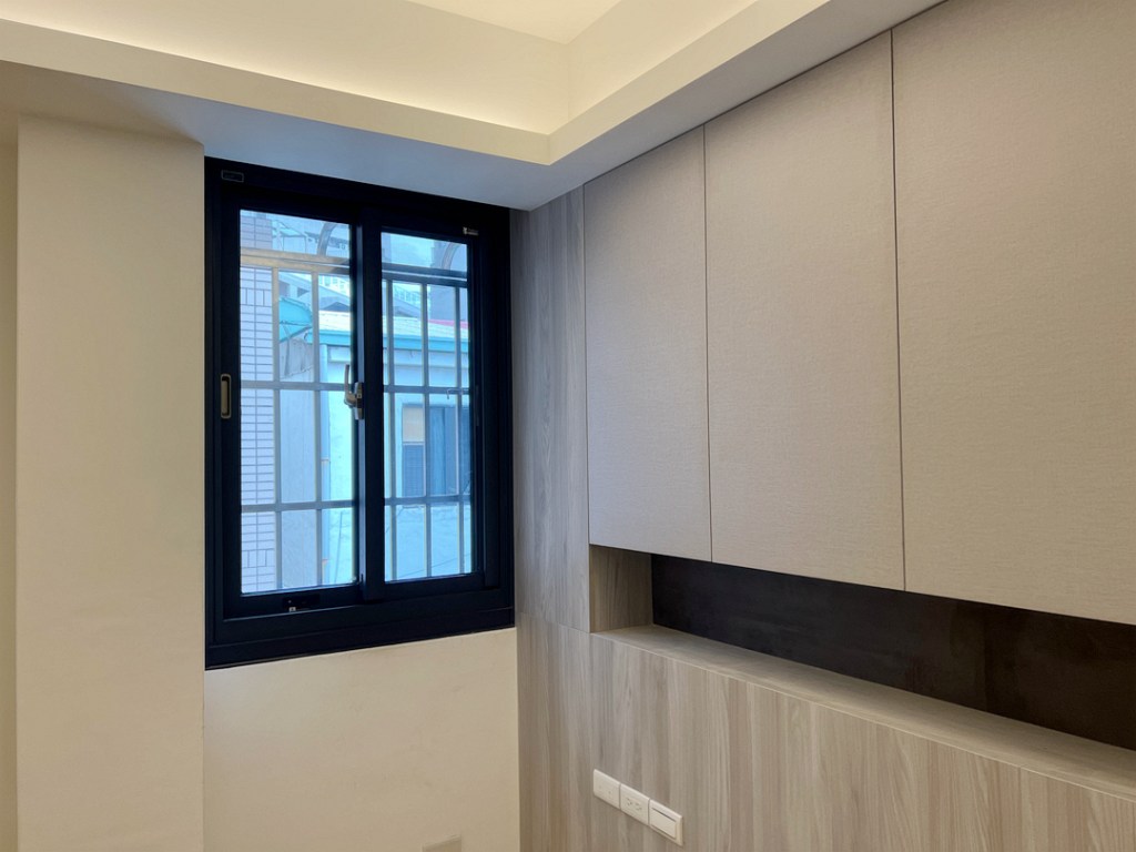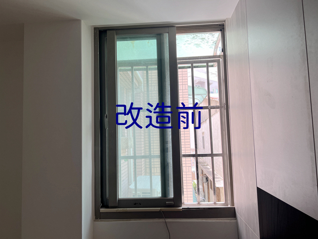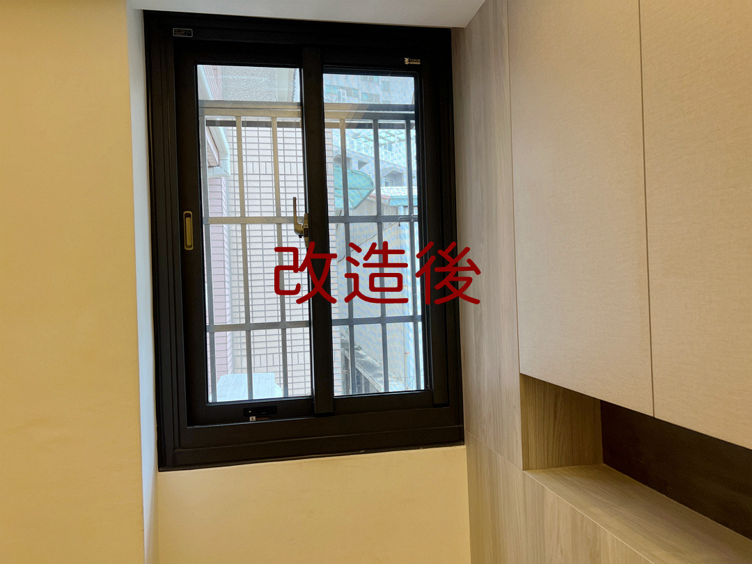 配合設計師全棟翻修工程,更換台中北區透天住宅氣密窗。臥室更換氣密窗,乾式施工以包框安裝,舊框不露痕跡。