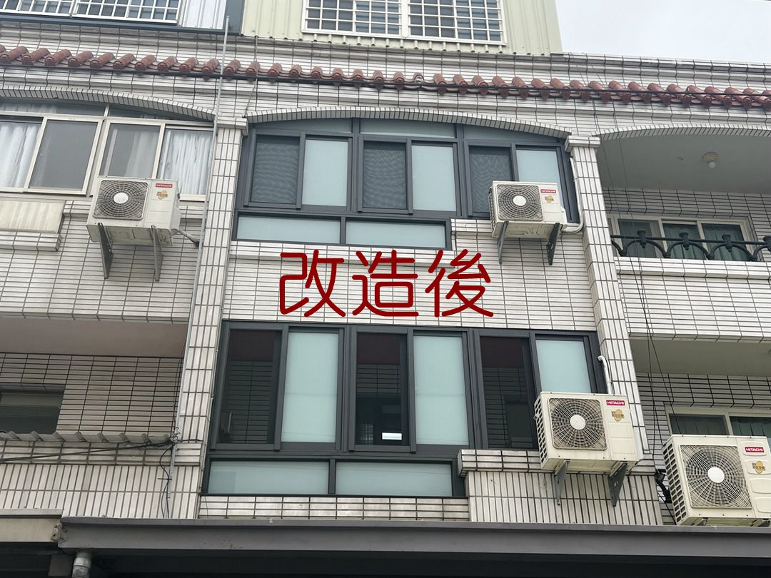業主住家位於海線面西,風大且西曬,委託將二三樓依原陽台型裝設氣密窗。原鐵欄杆已老舊有危險性,建議拆除後安裝陽台氣密窗。業主選擇鐵灰砂色氣密窗搭配白膜玻璃,落塵不明顯,且保有隱私。施工約二日可完成。