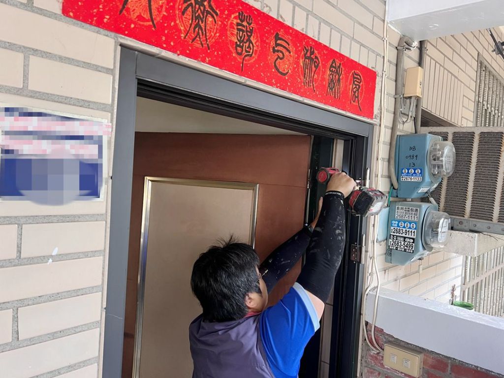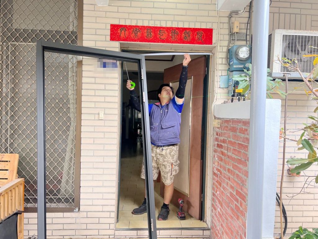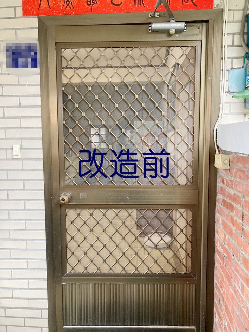 業主家外玄關原來是傳統紗門,改裝設三合一通風門。