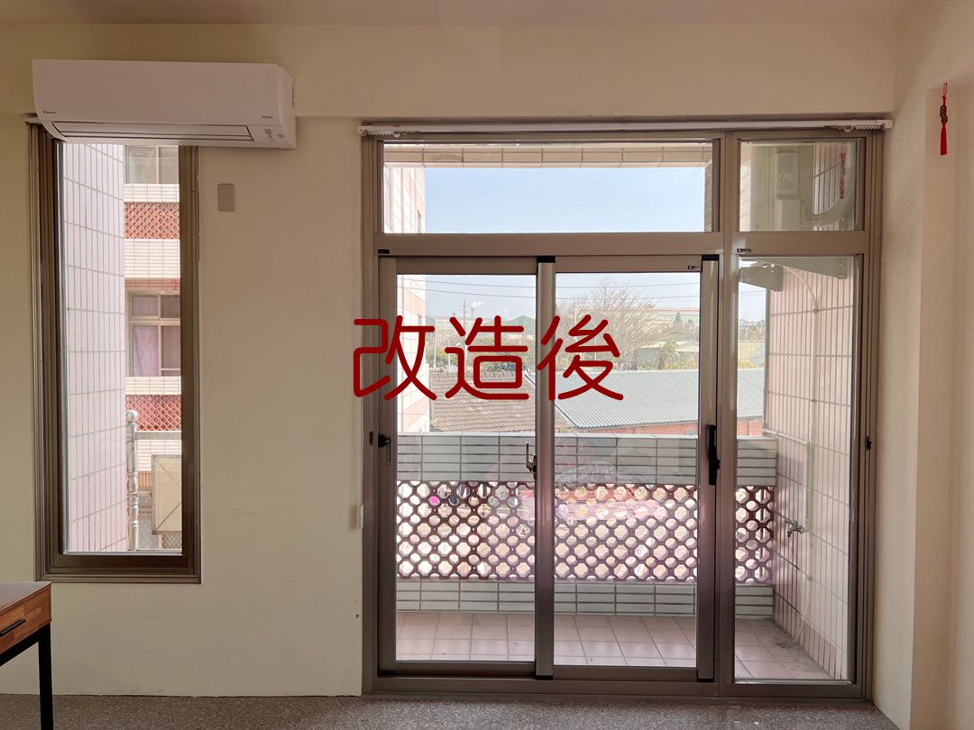 落地窗:原為四拉型落地窗,因為落地窗寬度較窄,決定改為二拉落地窗搭配固定玻璃,出入口變大,進出更方便。