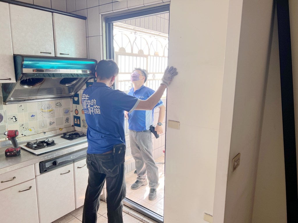 業主的廚房門為傳統鋁門和折疊紗門,為讓空間使用更便利,建議改裝設多段式微調三合一通風門,一扇通風門就兼具紗門、玻璃門及防盜門的功能,以包框型式施工,不破壞牆面,半日可完工。
