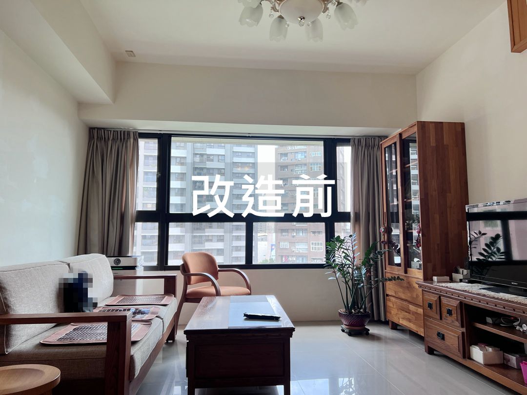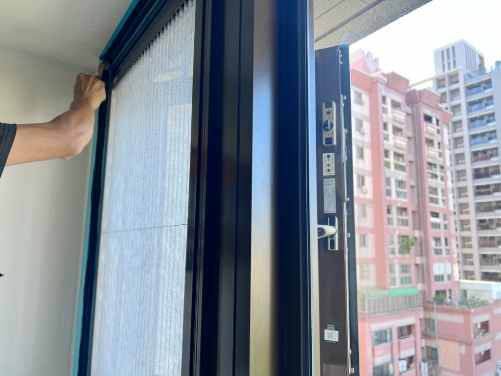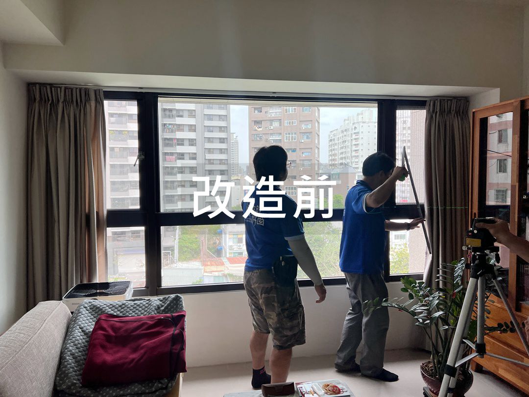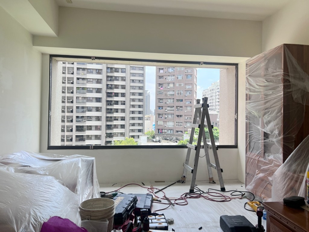 業主主臥室要求新的氣密窗顏色和外觀在符合大樓要求下,並且不用動到泥作,更換等級更高的氣密窗。建議以乾式施工的包框方式,將舊窗更換為高等級氣密窗。因業主要求加強隔音效果,所以氣密窗選擇搭配更厚的膠合安全玻璃。兩側的靜音加壓推開窗,外框雙膠條採用汽車防水標準EPDM材質,耐久不硬化,發泡材質防水,隔音效果更佳。