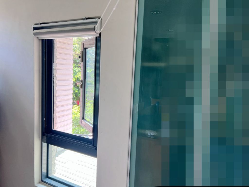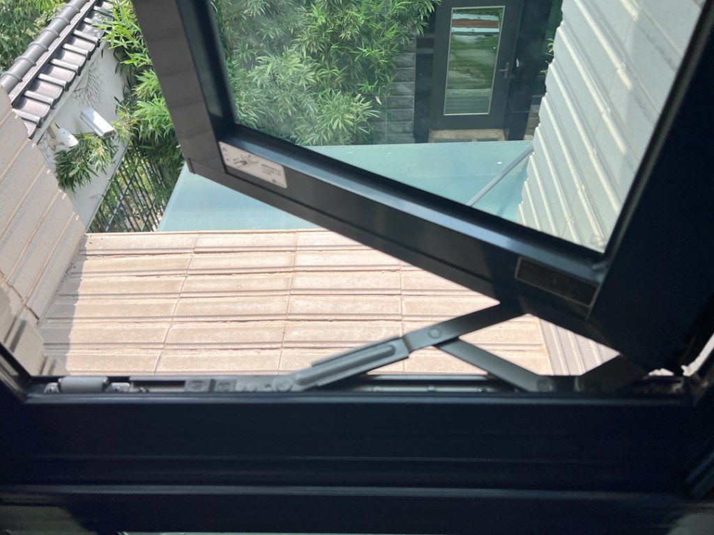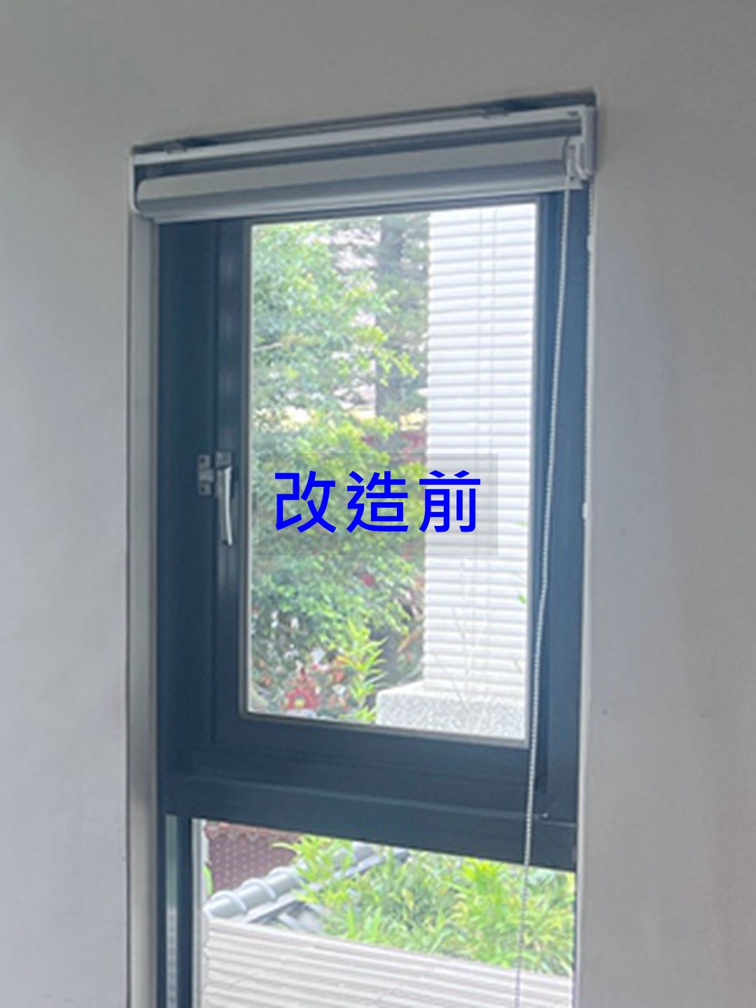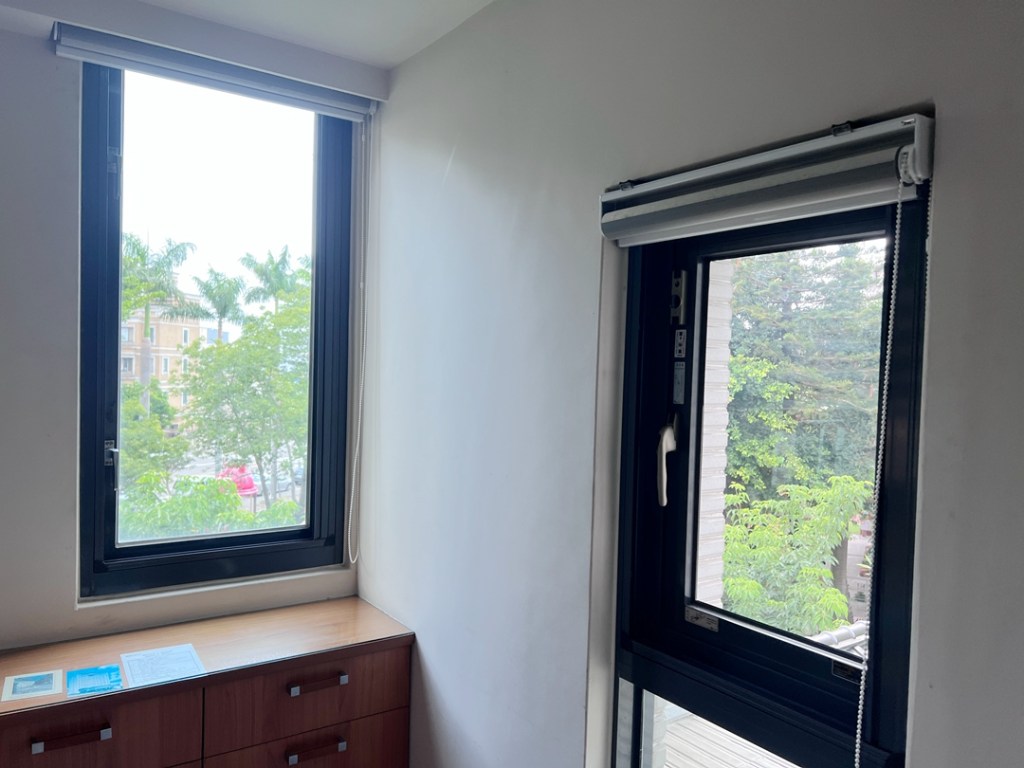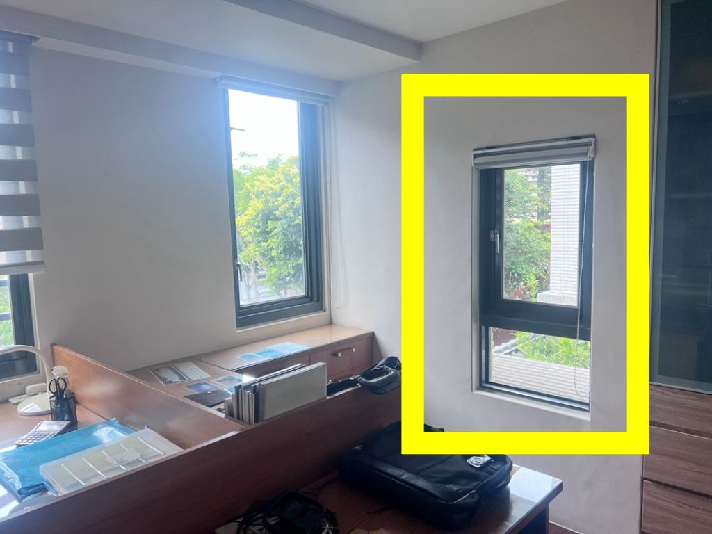 業主舊型推開窗密合度不佳無氣密效果,建議以乾式施工包框方式換新窗。推開窗加裝折疊紗窗防蚊,可依需求控制開窗幅度,安全性高,並輔以三道防盜鎖,不僅是防盜,更配有獨立鎖,避免家中幼童誤開窗跌落。水密防水效果經國家級實驗室測試,可達 150 kgf/m²以上,耐風壓可達360 kgf/m²。