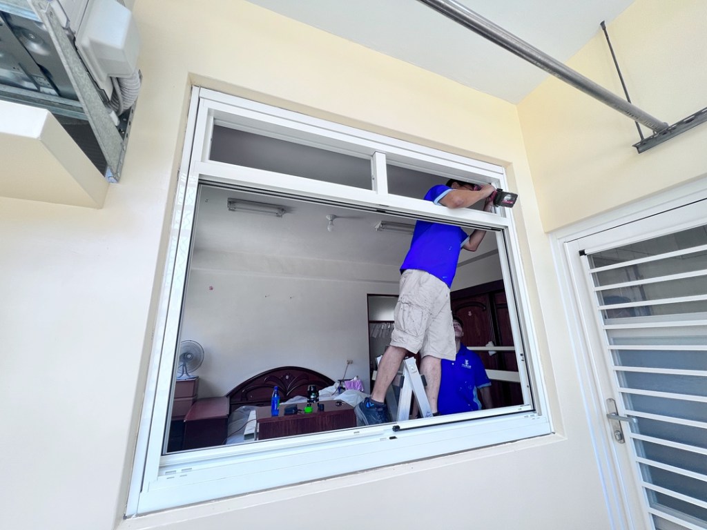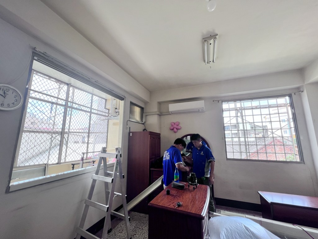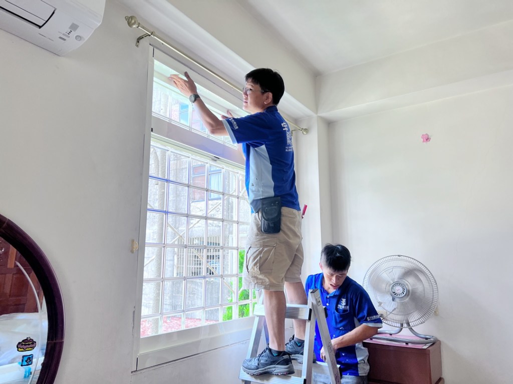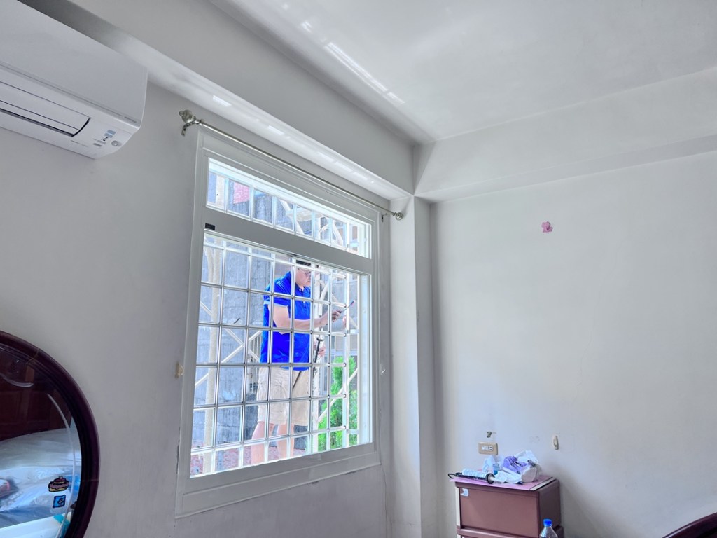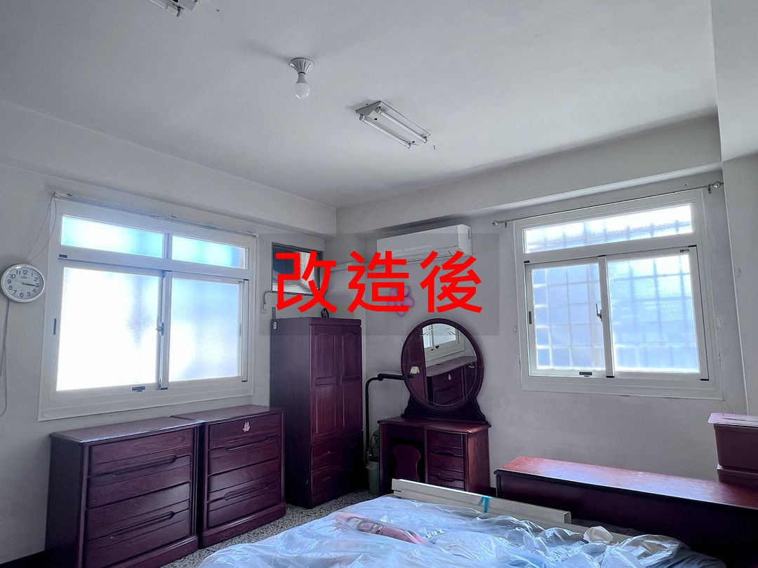 台中豐原的林先生住家已有三十年未整理,這次想翻修全棟門窗。主臥室共有二個窗戶,希望更換氣密窗後,能達到防塵降噪的效果。舊鋁窗分上下窗,因上氣窗不常開啟,建議作固定玻璃採光即可,下鋁窗仍延用二拉窗型。房間注重隱私但需保有光線,銀霞玻璃有透光不透視的特性,建議乳白色氣密窗搭配銀霞玻璃。