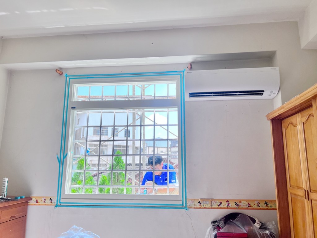 台中豐原林先生住家整棟翻修,書房更換氣密窗。因氣窗不常開啟,建議不再保留氣窗,將上氣窗改為固定玻璃,減少落塵。採用乳白色搭配霧面玻璃,透光不透視,採光好又有隱私性。