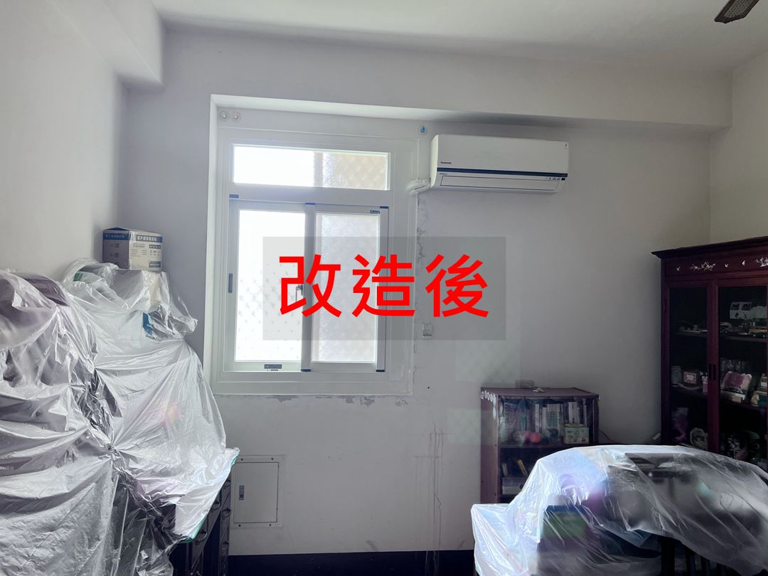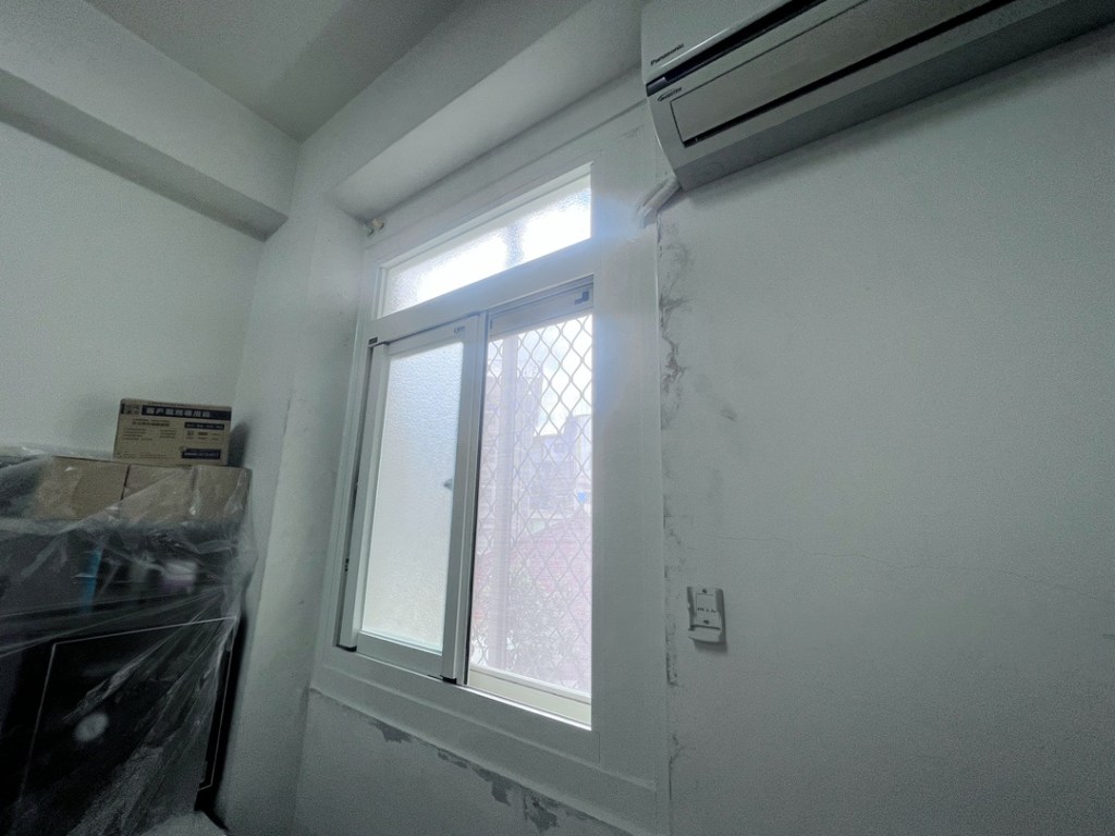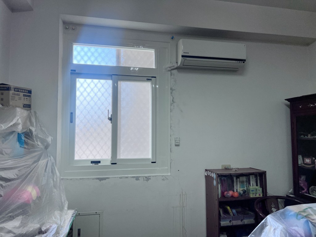 台中豐原的林先生,住家門窗整棟翻修。書房原鋁窗有冷氣管線穿過,窗戶開啟受限,希望更換氣密窗後改善開窗問題。新的氣密窗以乾式施工安裝,管線部份以鋁板單獨處理,不影響窗戶開窗。因氣窗不常開啟,建議不再保留氣窗,將上氣窗改為固定玻璃,減少落塵。採用乳白色搭配霧面玻璃,透光不透視,採光好又有隱私性。