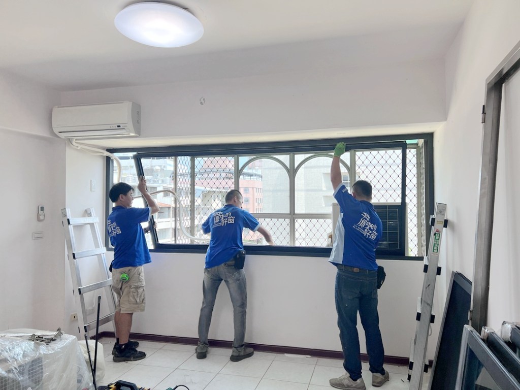 此次業主選用沉穩高雅的鐵灰砂色氣密窗搭配透明玻璃,一天即可完工。