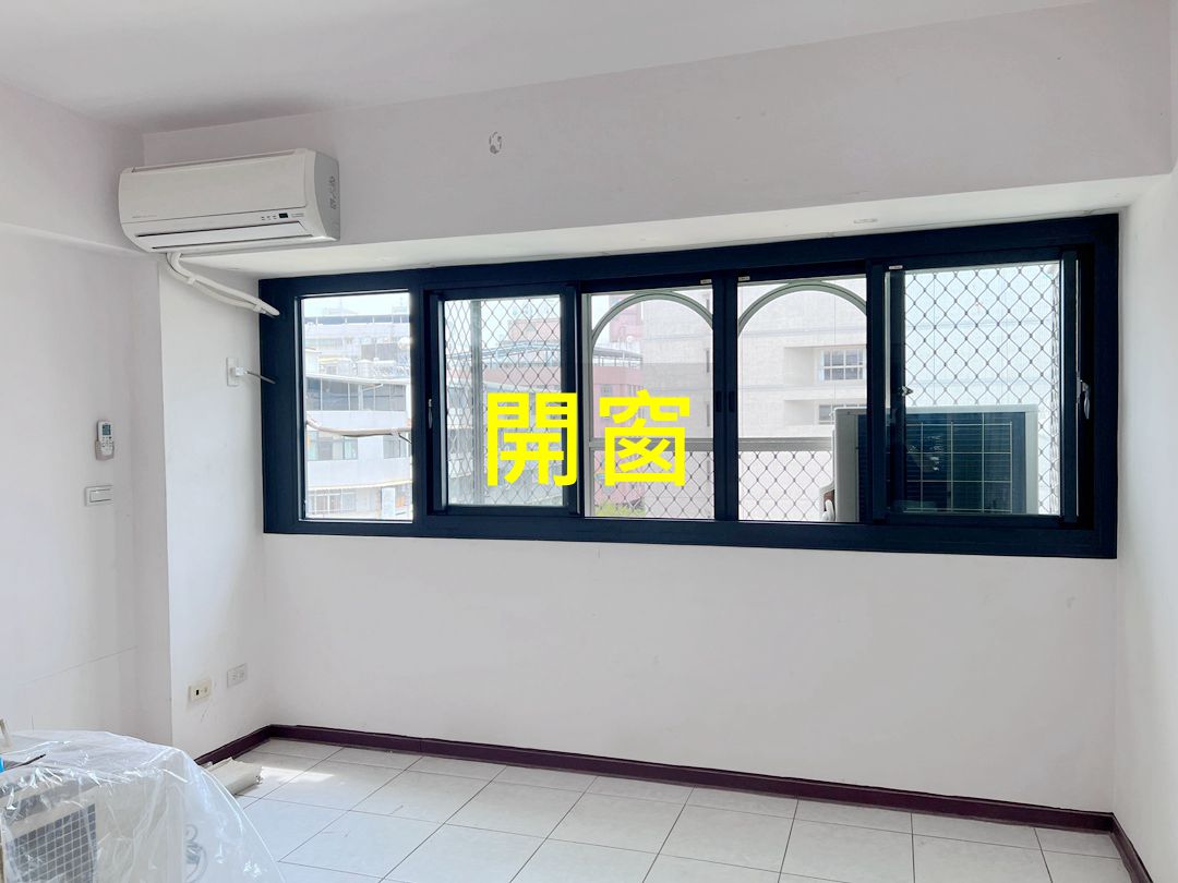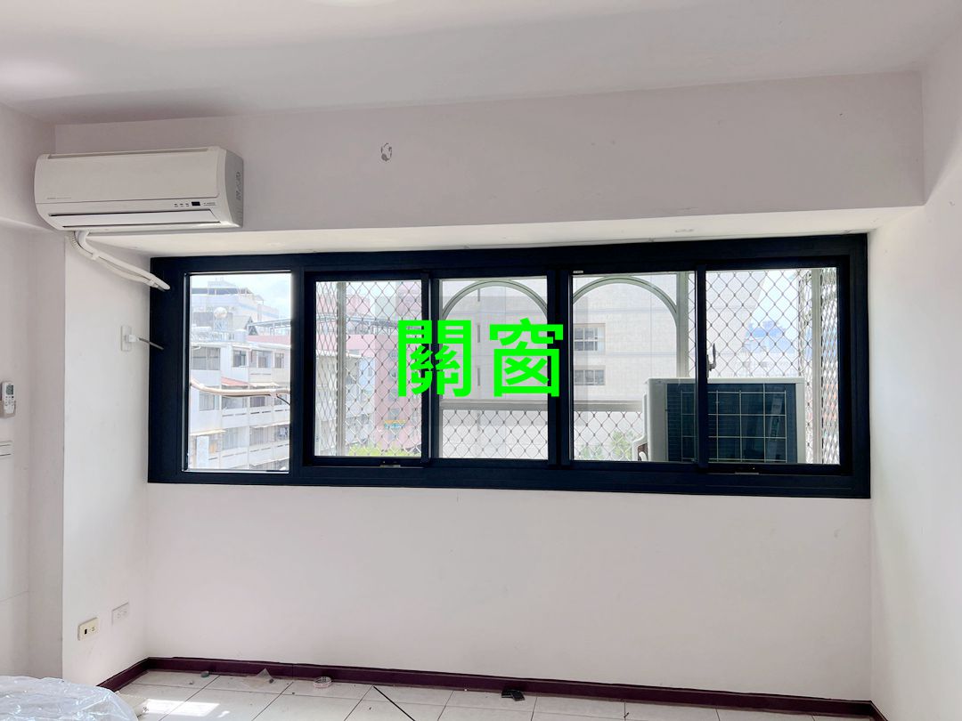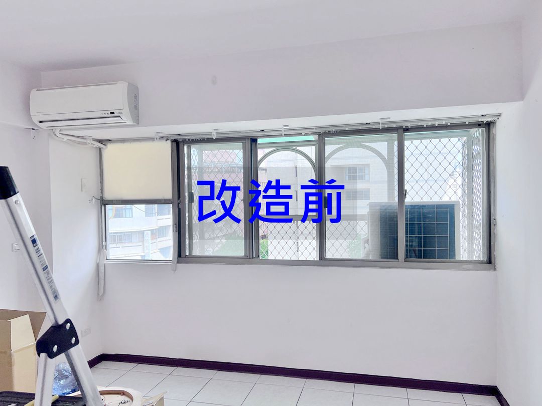 場勘發現房間窗戶魔改嚴重影響美觀和隔音,建議拆除改為氣密窗。此次施工配合左側預留冷氣管線,以一固定玻璃和四拉氣密窗造型。專管專用,管線不影響氣密窗使用及功能。