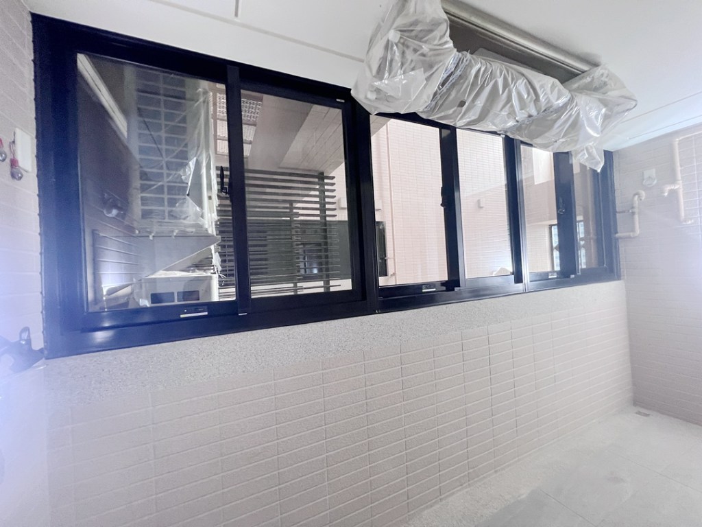此次業主選用深沉低調的消光黑色氣密窗搭配灰色玻璃,三座橫拉氣密窗併用,乾淨耐用省空間。