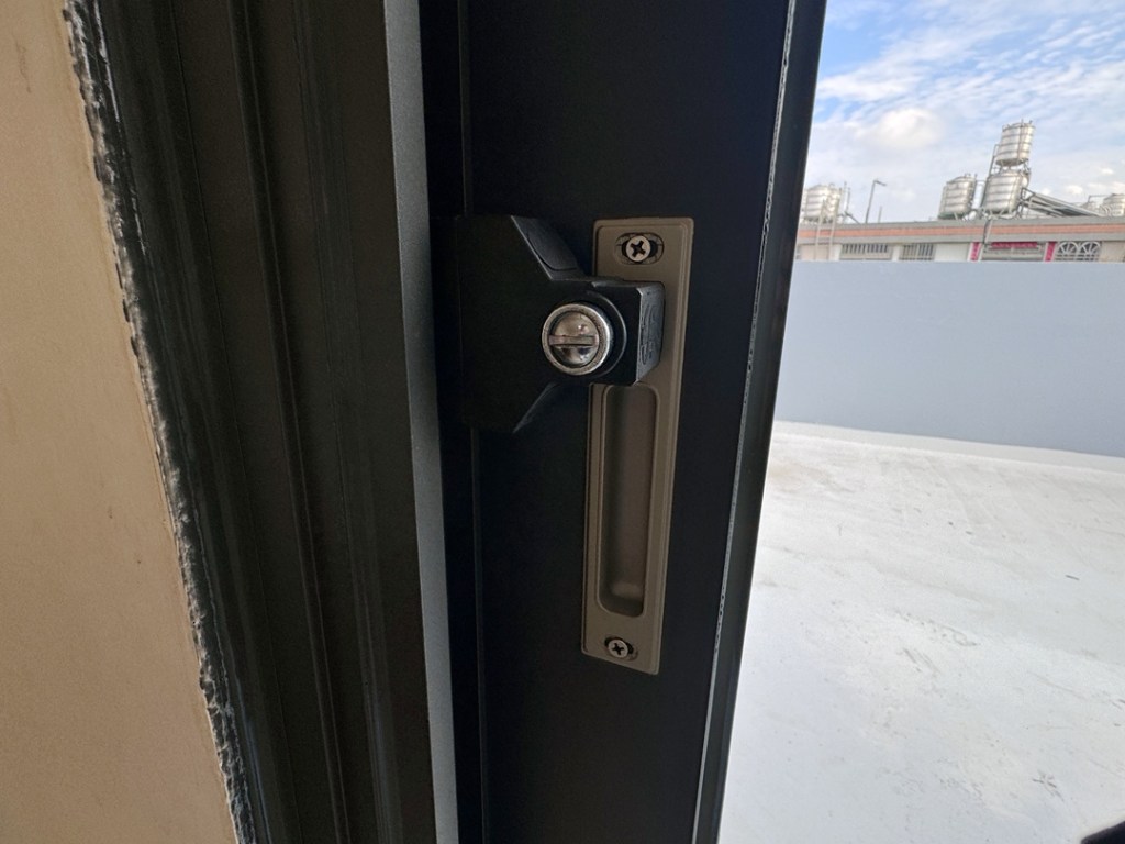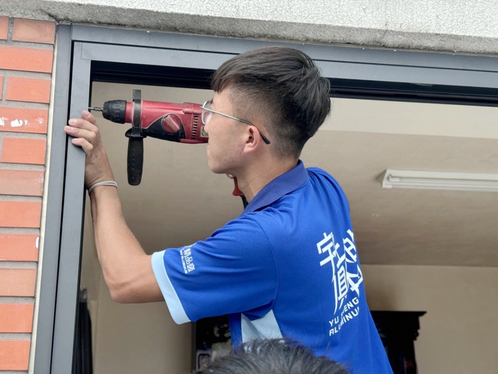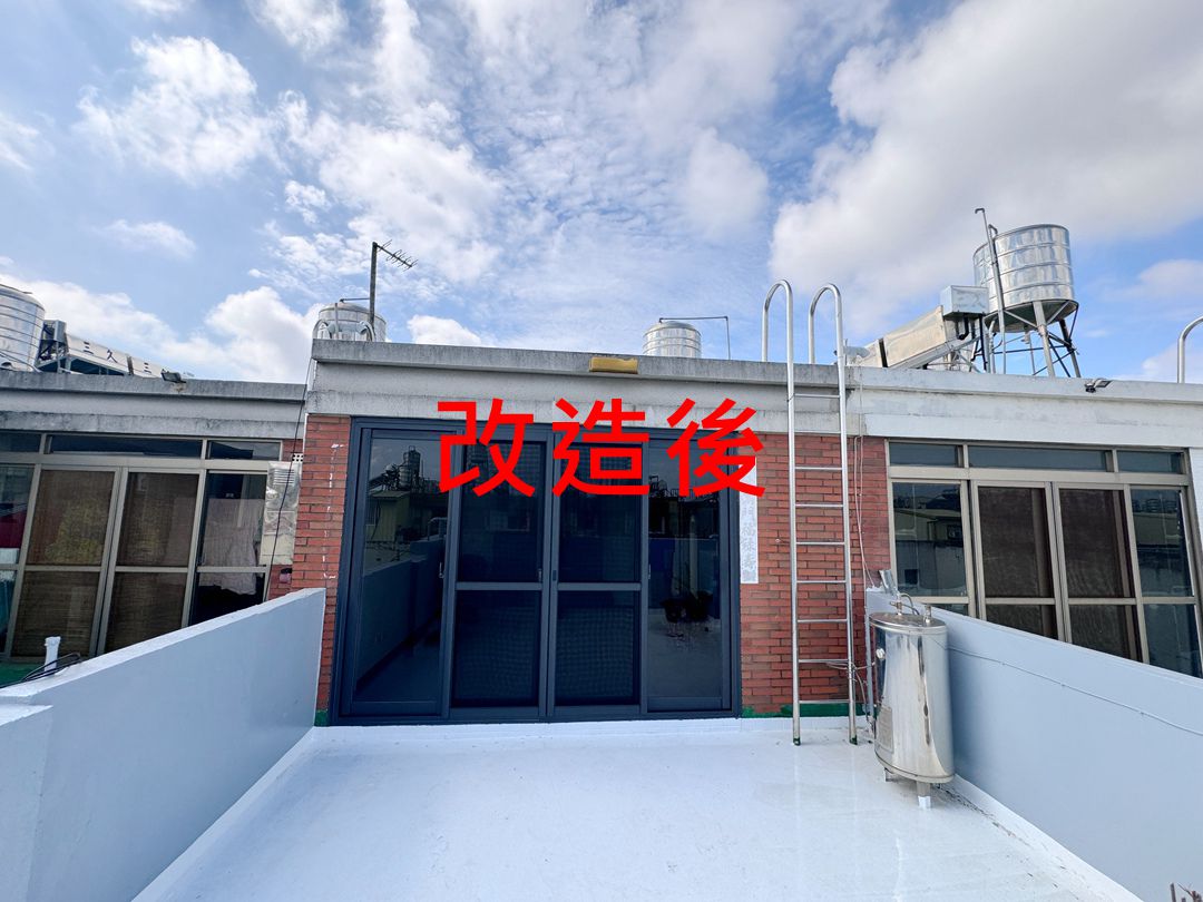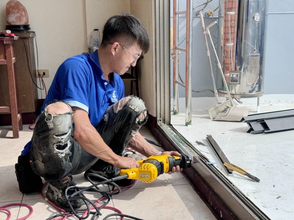 業主家神明廳位於頂樓,有落地窗需更新的需求。業主希望更換有氣密效果的落地窗。原有舊落地窗拆除後,不再保留氣窗,四片落地玻璃更顯大氣。