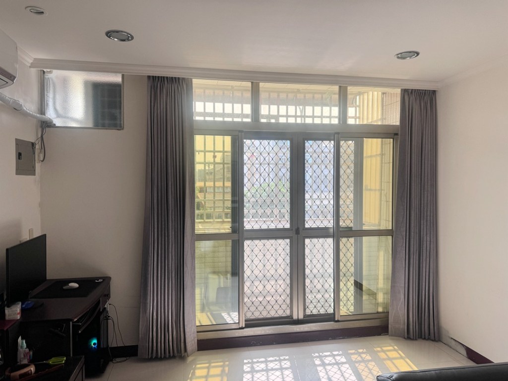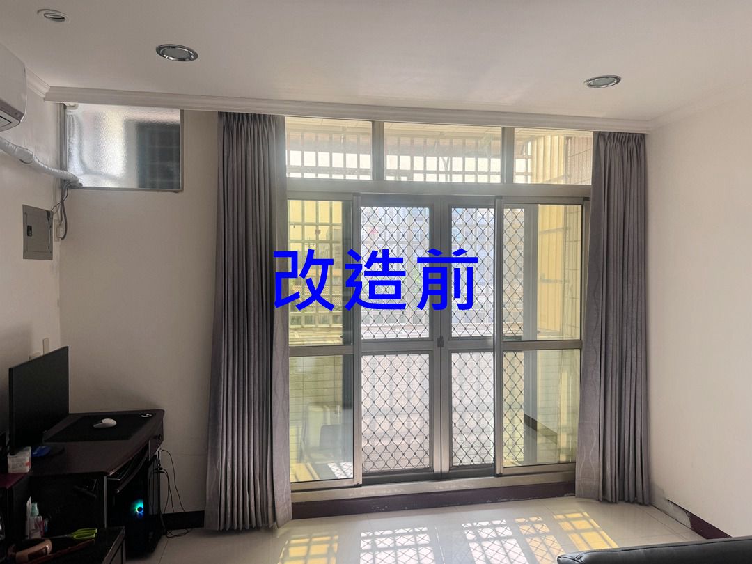 業主臥室臨四線道馬路,車聲二十四小時吵雜,舊窗雖然為氣密窗,但不夠力,希望更換等級更高的氣密落地窗。經評估建議更換更厚的膠合玻璃搭配更高等級的氣密落地窗,以包框方式-乾式施工法,當日可完成入住。