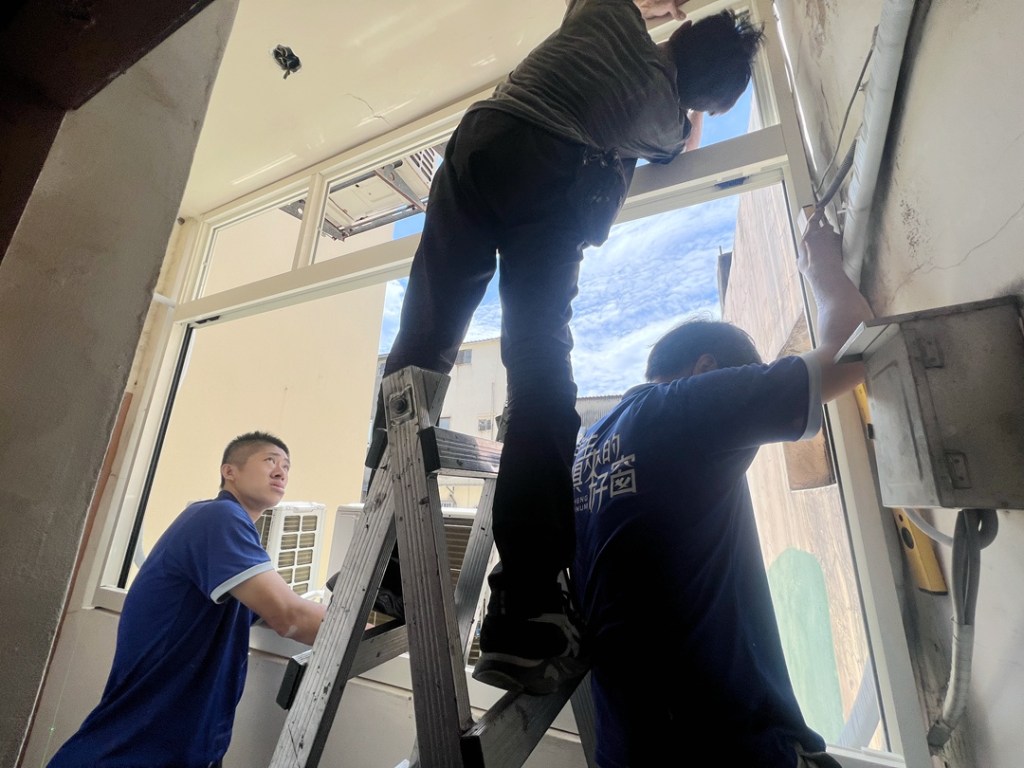 此次業主選用明亮有朝氣的乳白色氣密窗搭配透明玻璃,簡單乾淨耐用。