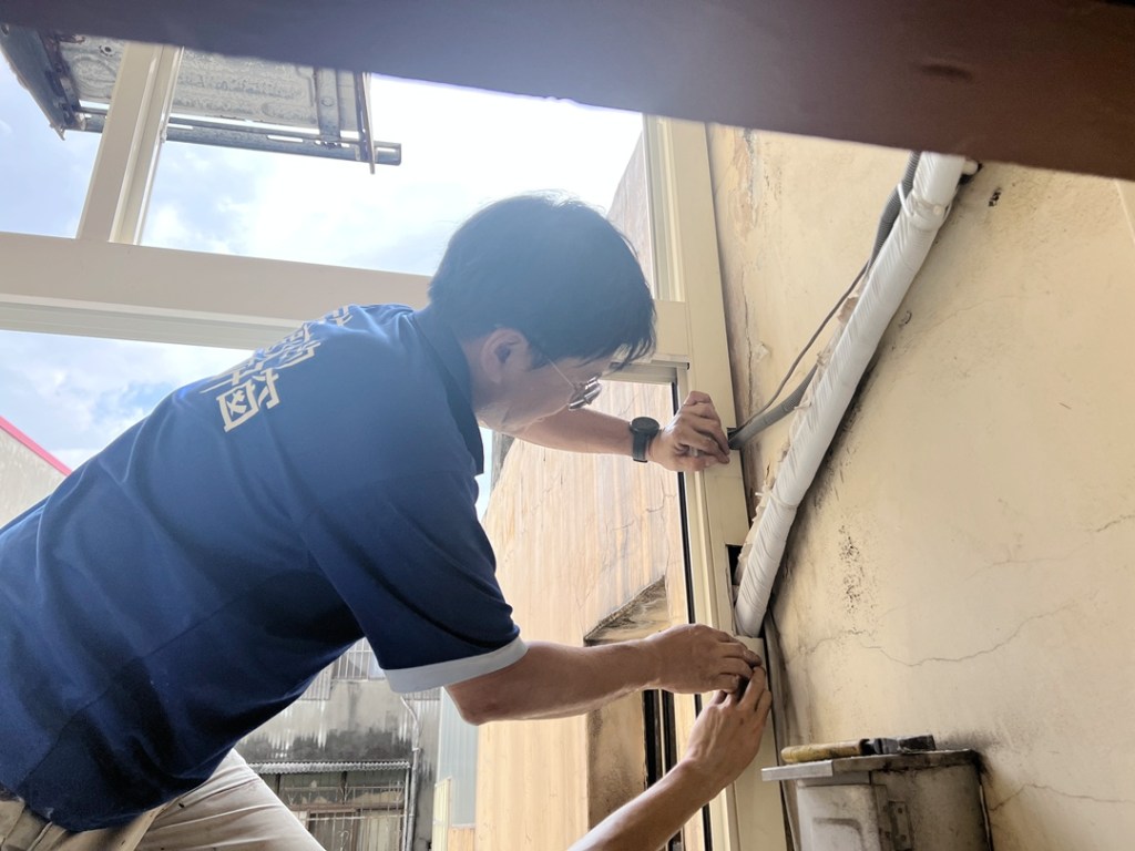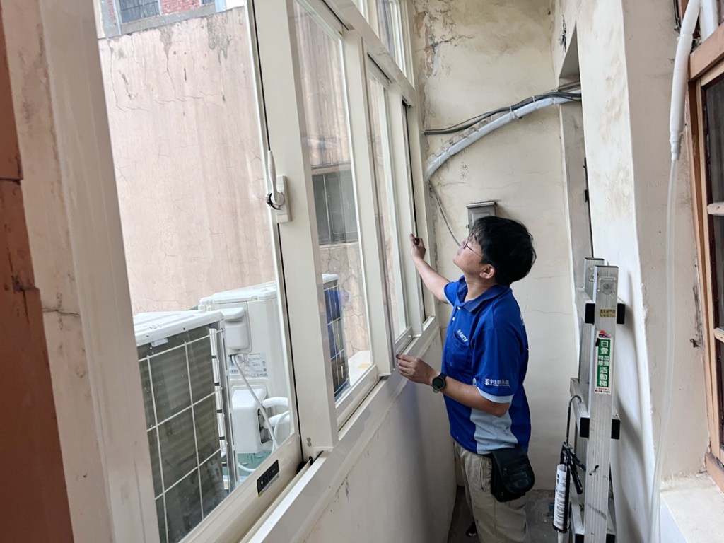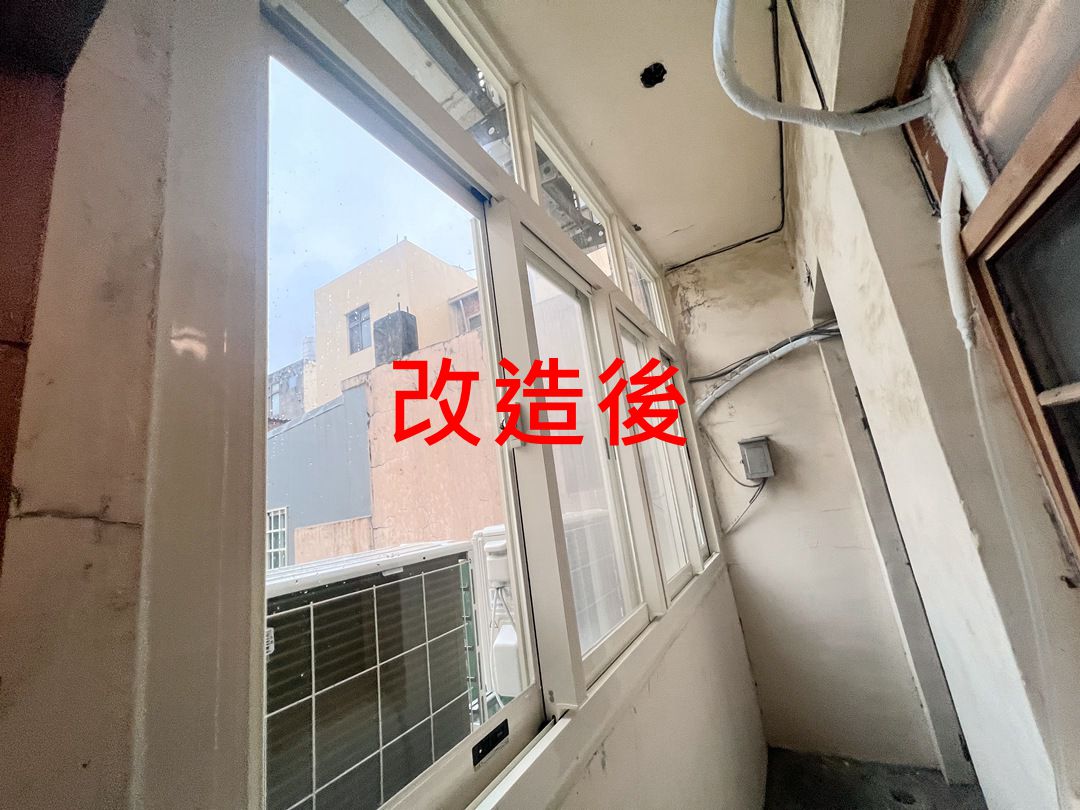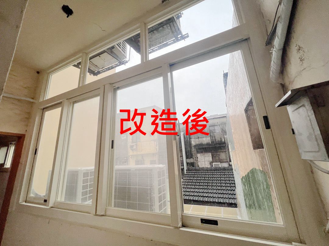 業主家傳統透天厝的後陽台,因廁所也在後陽台,希望改造成防雨空間。因為後陽台較窄小,建議可全作氣密窗,形成一室內走廊。連同後陽台廁所的木窗,也一併更改為氣密窗,冬天不用再忍受冷風了。